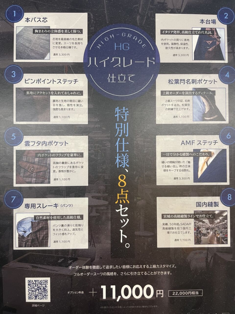 また、SADAでは、イタリアブランド生地をお選びいただくと