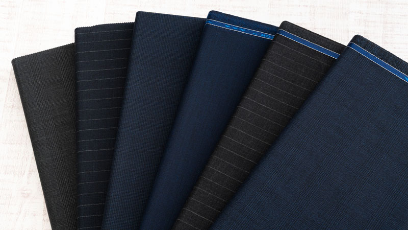 ウール 70% + ポリエステル 30%ビジネスシーンに最適な柄のコレクション。ポリエステルを絡めることにより耐久性を強化しています。躍動的なビジネスマンにおすすめです。 -