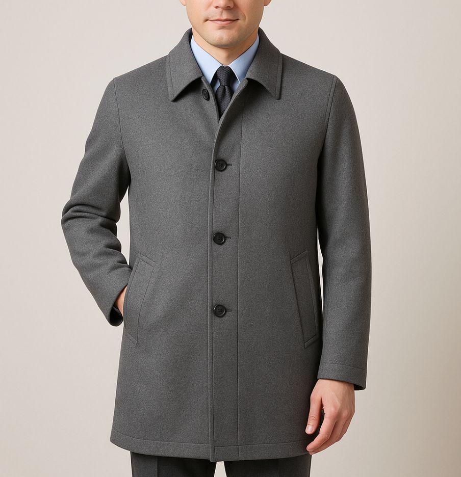 シンプルで無駄のないデザインのステンカラーコートは、スーツやセットアップとも相性が良く、ビジネスシーンで特に高い支持を集めている定番コートです。