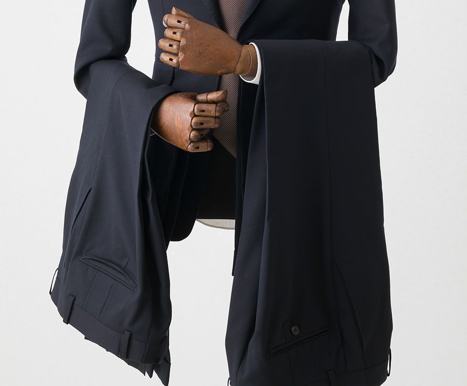 タック入りパンツを含むスーツは、体型に合わせて仕立てることで、見た目の美しさと着心地が大きく変わります。