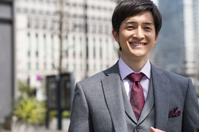 グレースーツは、誠実さや信頼感を与えながら、知的で洗練された印象を演出できる万能カラーです。ネイビースーツや黒スーツに比べて柔らかく、親しみやすい雰囲気を持ち、幅広いビジネスシーンに馴染みます。