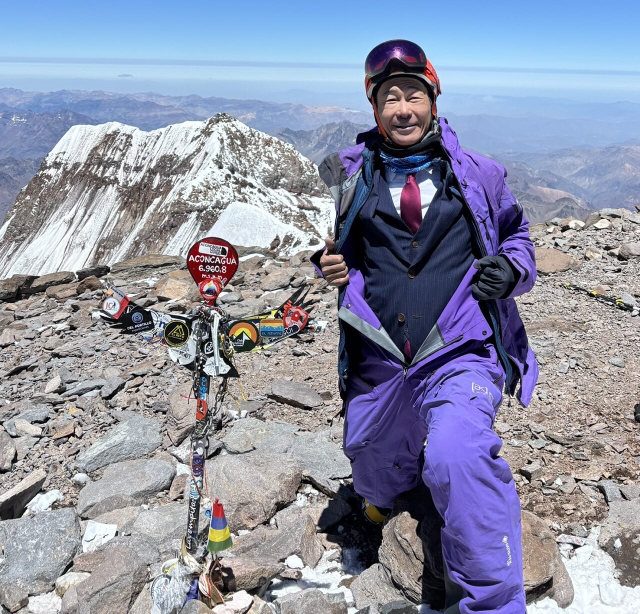 南米最高峰アコンカグアをスーツで登頂!オーダースーツSADA社長「ちゃんとインナー」ネクタイ締めてニッコリ