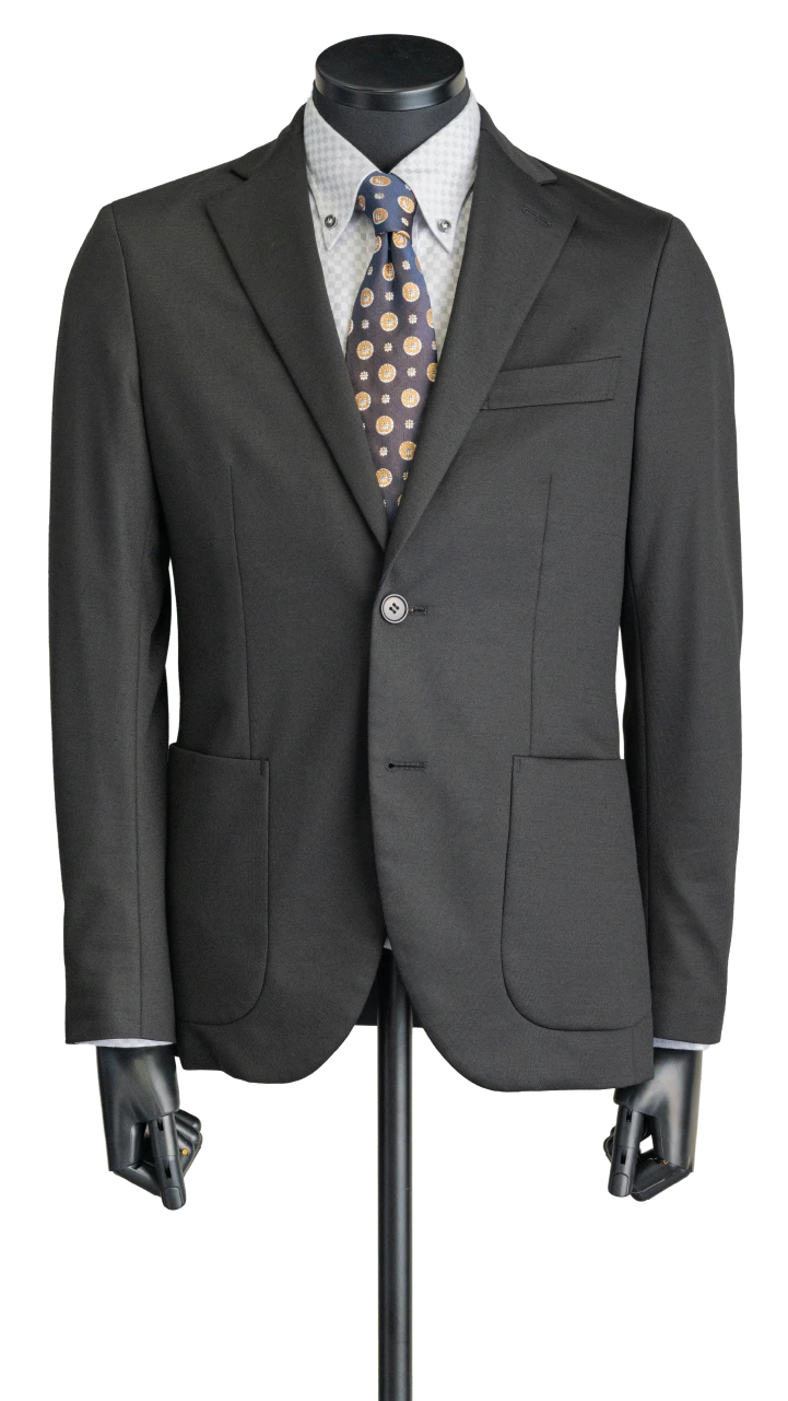ジャージーという、従来のスーツとは全く異なる性質を持つ素材を、いかにして「端正なスーツ」に昇華させるか。それは、CADによる緻密な立体設計と、長年培われた縫製技術の結晶です。一人ひとりの体型にミリ単位で適合させるフルオーダーの精度こそが、ジャージー素材に宿る「だらしなさ」を徹底的に排除し、圧倒的な気品を与えます。 -