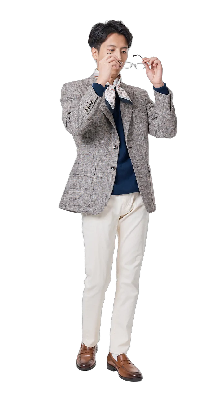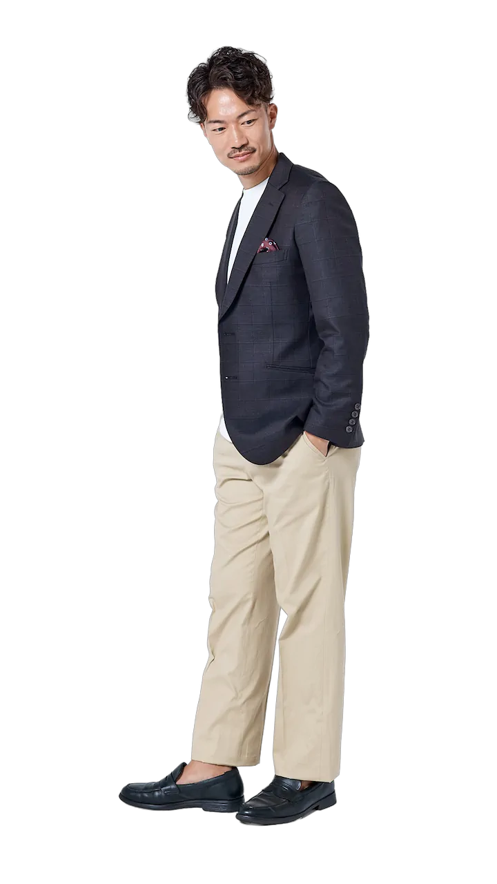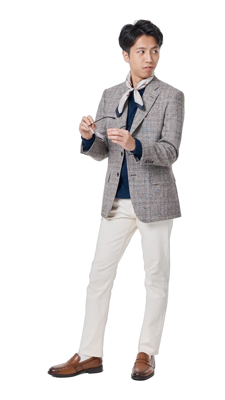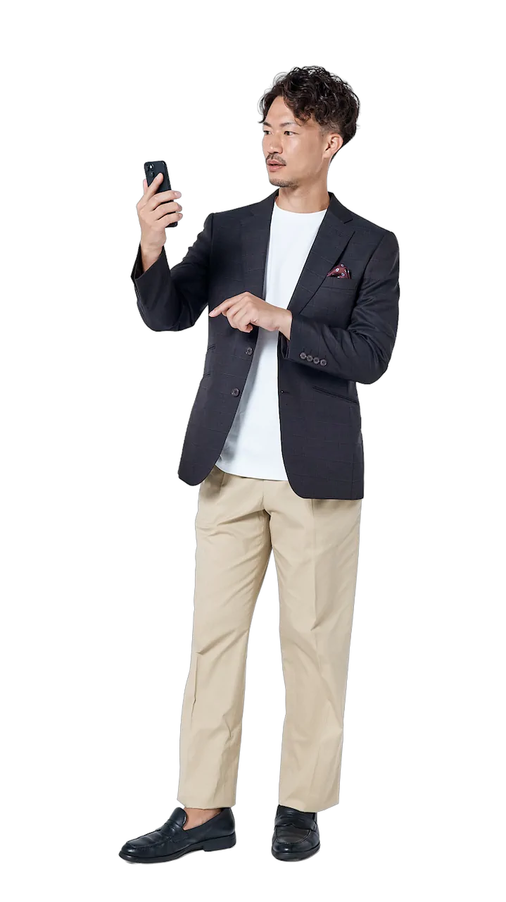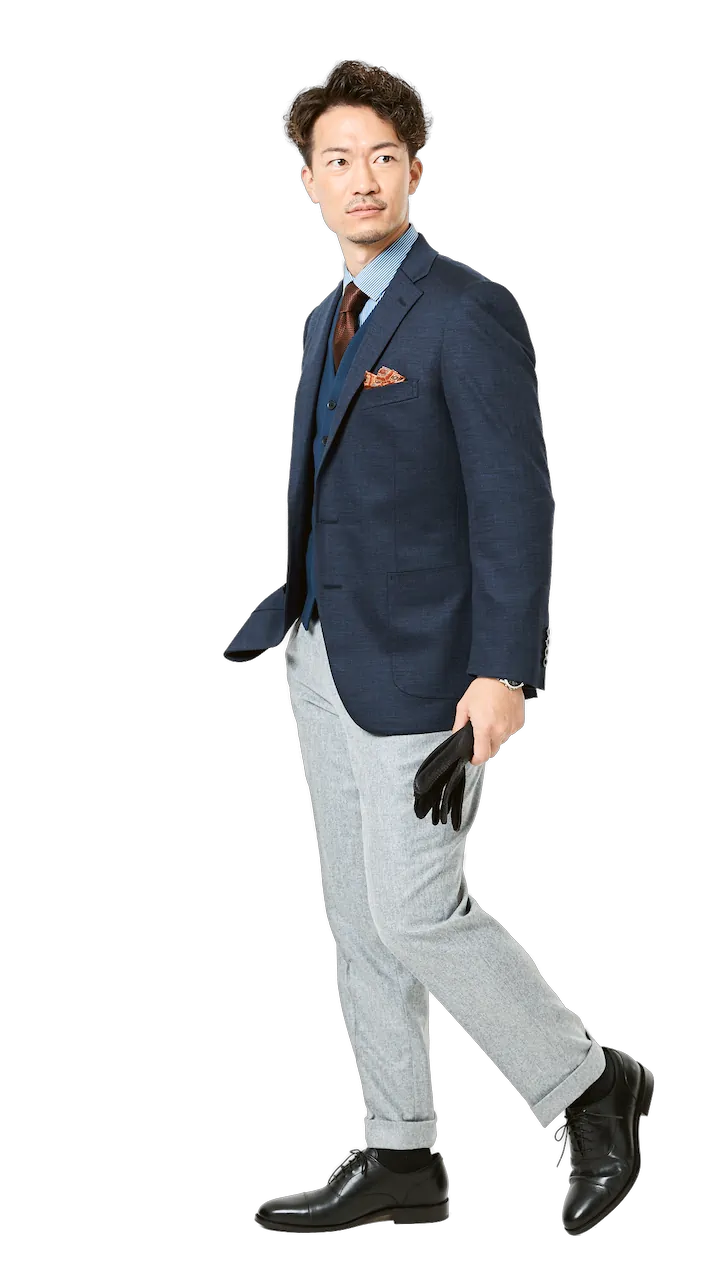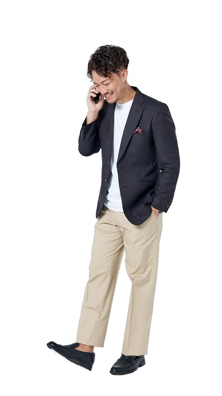 日常で着こなすジャケパンスタイルも、颯爽としたビジカジスタイルも。フルオーダーなら、どんなスタイルも思いどおり。ぜひ店舗でスタイリストご相談ください。