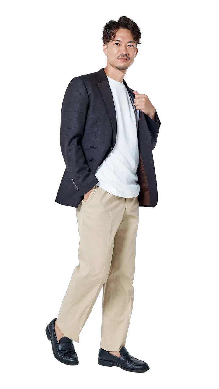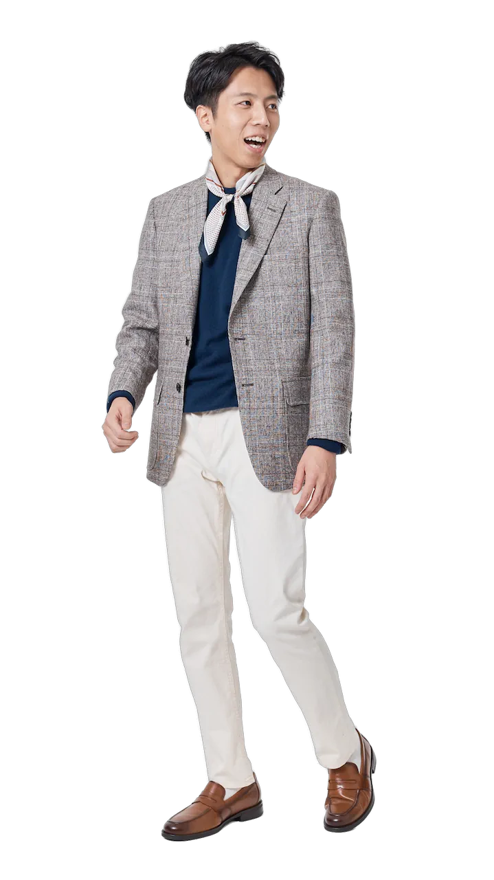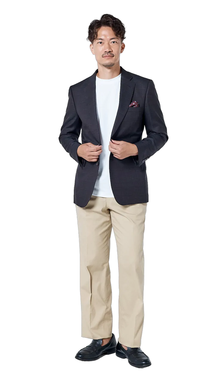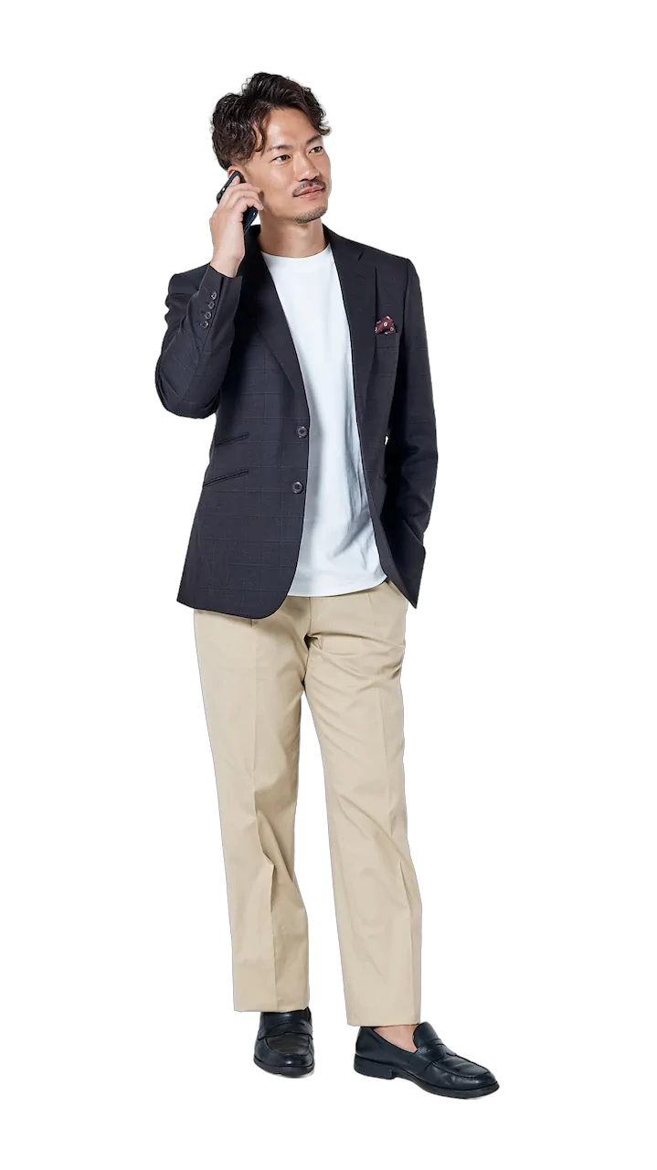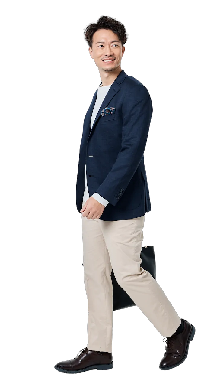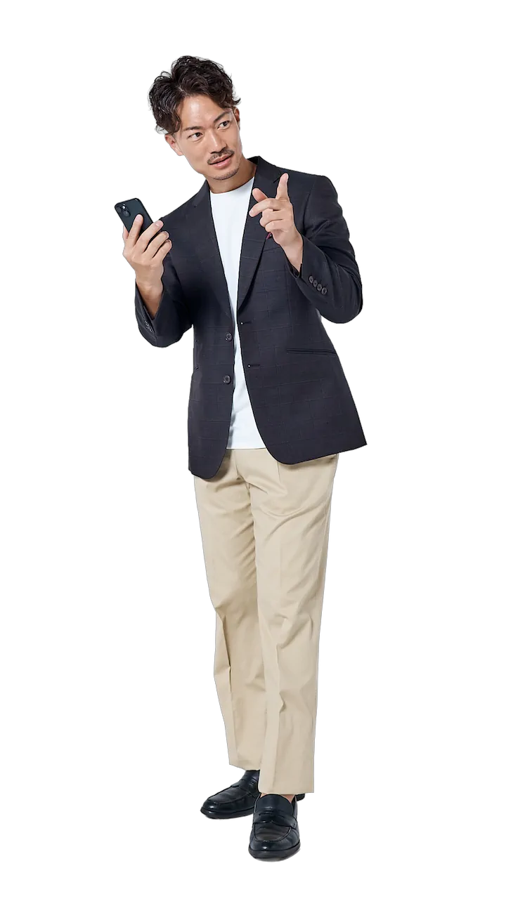 日常で着こなすジャケパンスタイルも、颯爽としたビジカジスタイルも。フルオーダーなら、どんなスタイルも思いどおり。ぜひ店舗でスタイリストご相談ください。