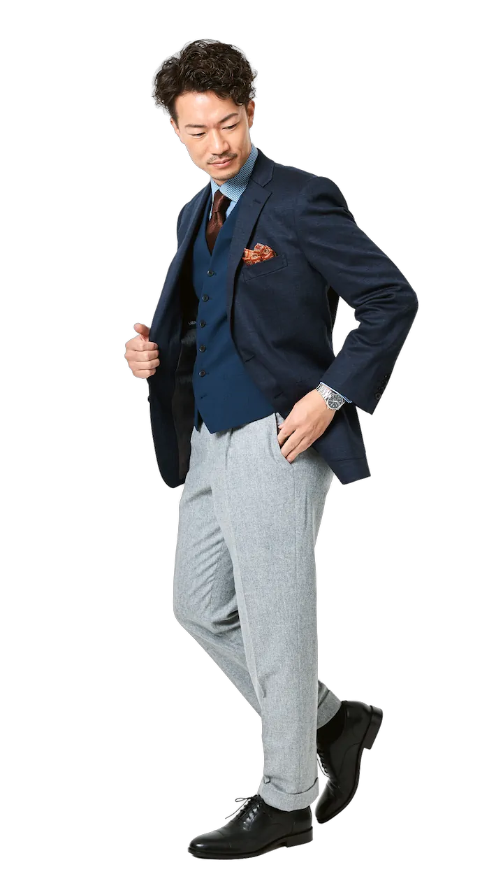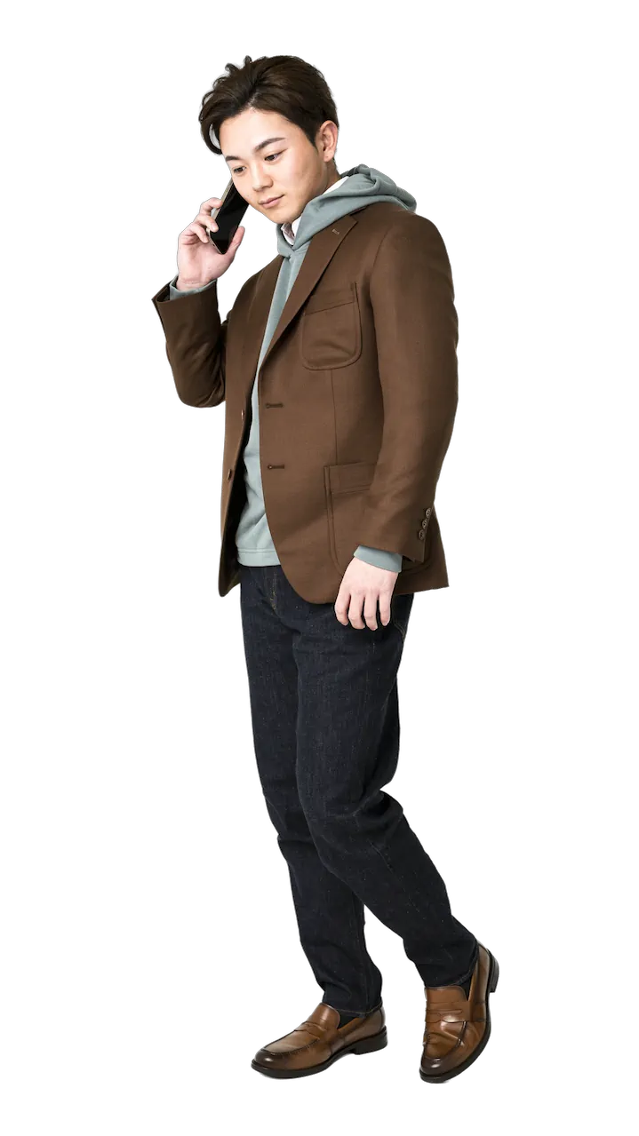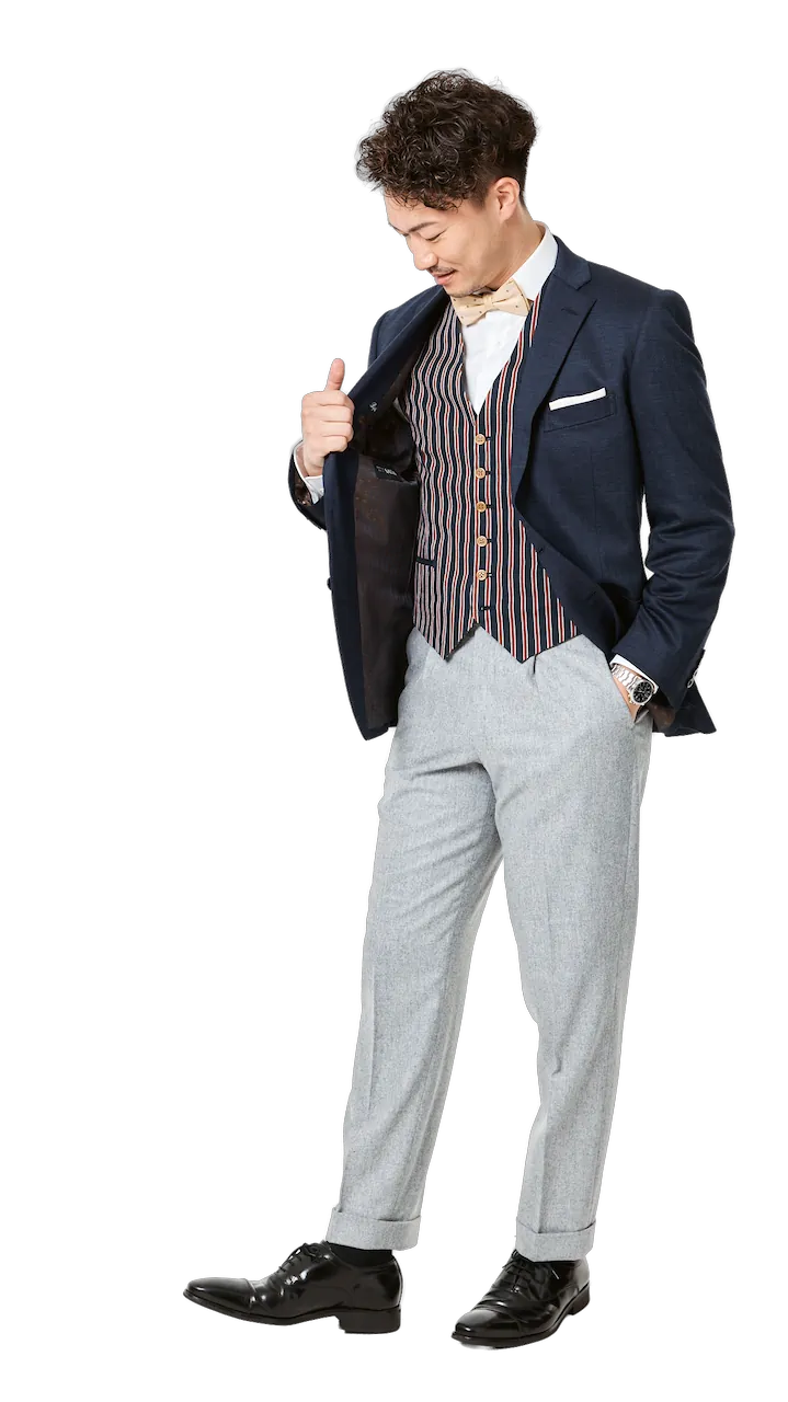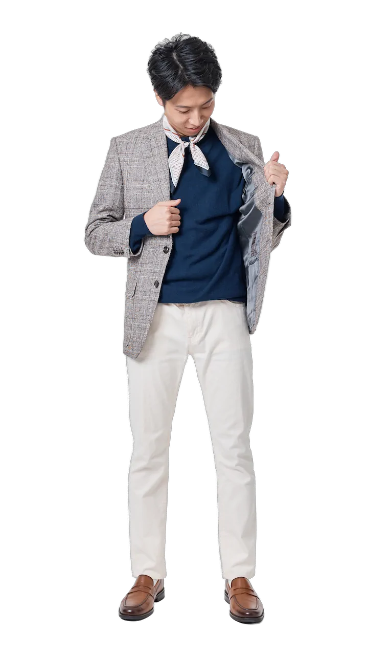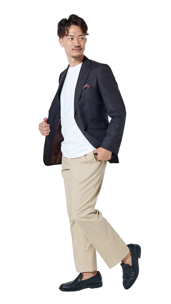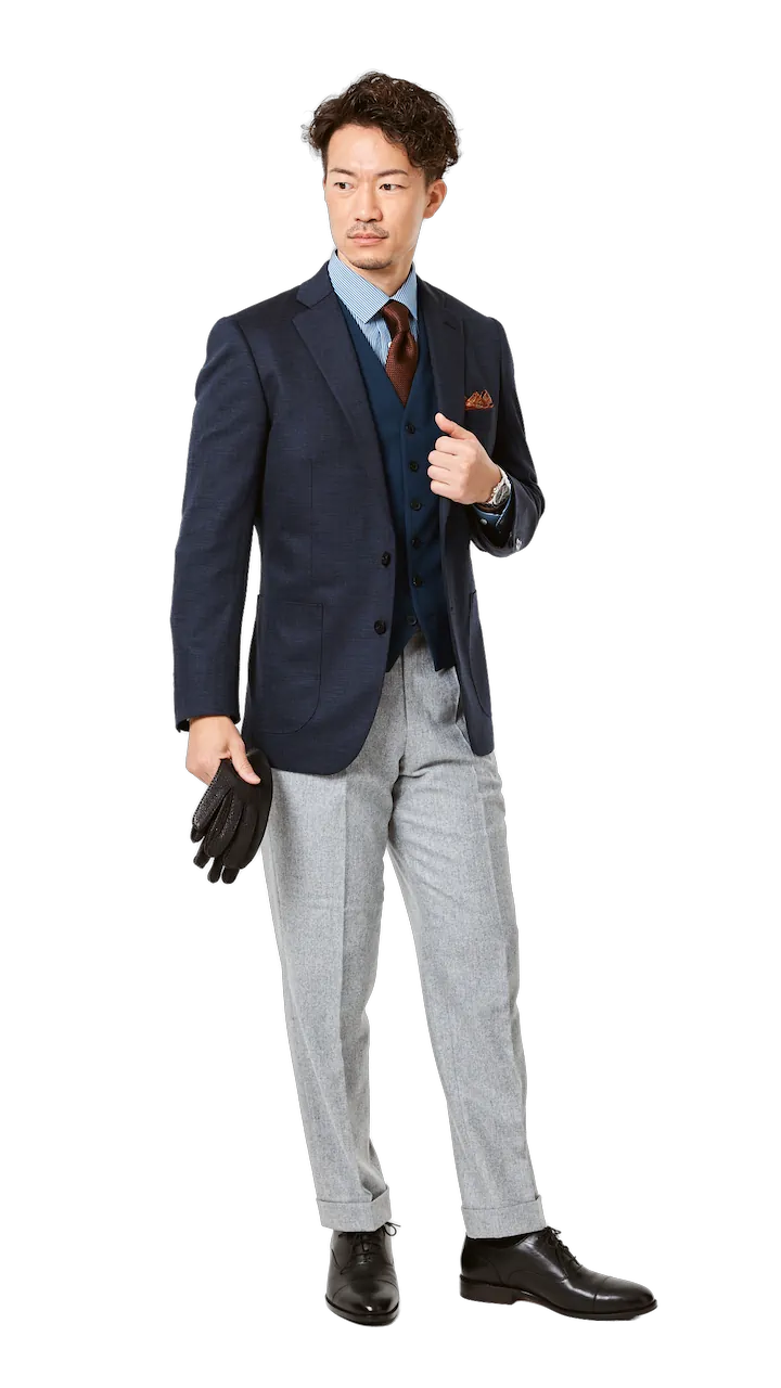 日常で着こなすジャケパンスタイルも、颯爽としたビジカジスタイルも。フルオーダーなら、どんなスタイルも思いどおり。ぜひ店舗でスタイリストご相談ください。