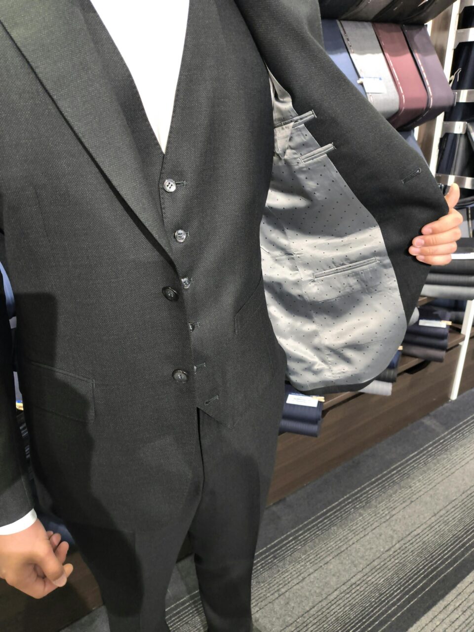 【Super100’s】ダークグリーン バーズアイスーツ R.K様/20代/男性 オーダースーツSADA アクタ西宮店 投稿日 2025年12月18日 最終更新日 2025年12月18日 2釦シングルスリーピーススーツ 生地素材 ウール100%【Super100's】 ダークグリーン バーズアイ柄 秋冬生地 生地No.7-6841 裏地 キュプラ100% ライトグレー ドット柄 裏地No.83 ボタン サンダー釦 シルバーグレー 釦No.SB-126 オプションその他 AMFステッチ PP加工 衿穴:シルバーグレー 担当スタイリスト