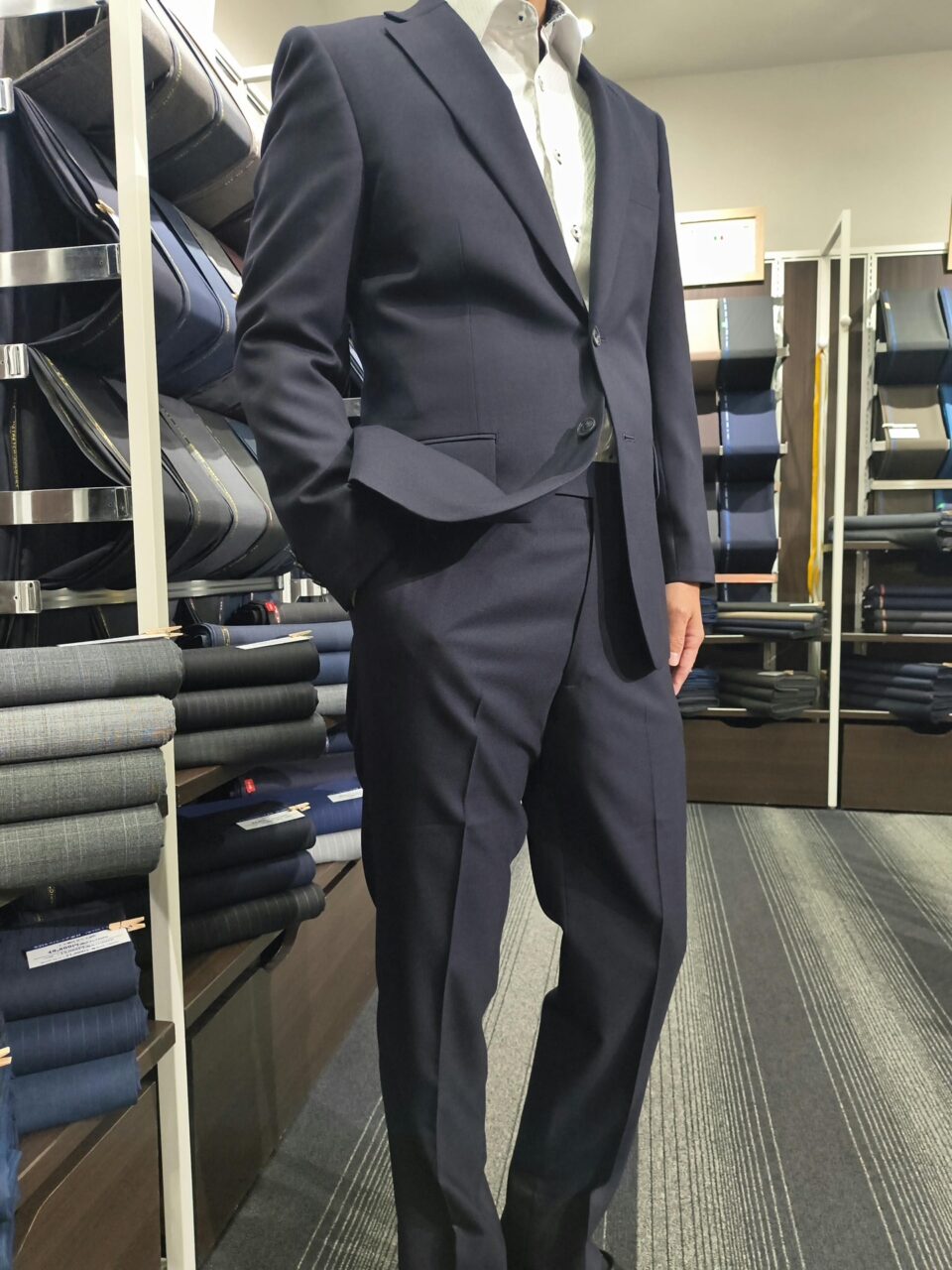 濃紺無地スーツ S.T様/男性 オーダースーツSADA アクタ西宮店 投稿日 2025年12月18日 最終更新日 2025年12月18日 2釦シングルブレストスーツ 生地素材 ウール100% 濃紺無地柄 秋冬生地 生地No.7-6542 裏地 ポリエステル100% チャコールグレー無地 裏地No.333 ボタン プラスチック釦 チャコールグレー 釦No.06 オプションその他 袖口重ね釦 担当スタイリスト 上田