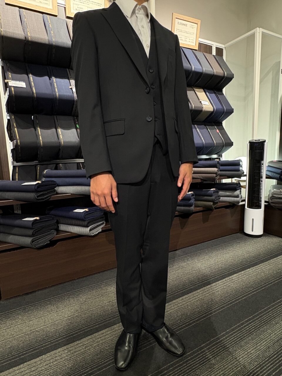 【3season】黒無地スリーピーススーツ W.K様/20代/男性 オーダースーツSADA アクタ西宮店 投稿日 2026年2月16日 NEW! 最終更新日 2026年2月16日 2釦シングルスリーピーススーツ 生地素材 ウール50%/ポリエステル50% 黒色 無地柄 3season 生地No.8-2195 裏地 ポリエステル100% 明紺 無地柄 裏地No.60 ボタン プラスチック釦 紺色 釦No.65 オプションその他 PP加工 シック加工 Dカン アームシック 担当スタイリスト 田中