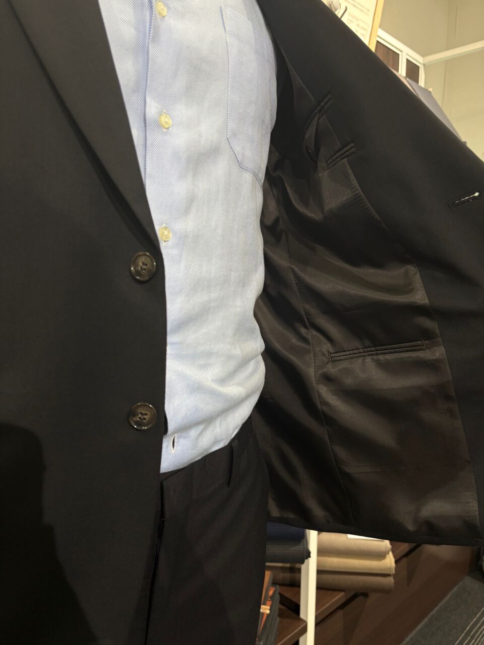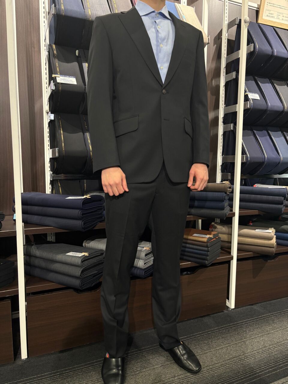 【3season】黒無地 リクルートスーツ H.T様/男性 オーダースーツSADA アクタ西宮店 投稿日 2026年3月26日 NEW! 最終更新日 2026年3月26日 2釦シングルブレストスーツ 生地素材 ウール50%/ポリエステル50% 黒色 無地柄 3シーズン生地 生地No.8-2195 裏地 ポリエステル100% ブラウン 無地 裏地No.120 ボタン プラスチック釦 ブラウン 釦No.445 オプションその他 担当スタイリスト 上田