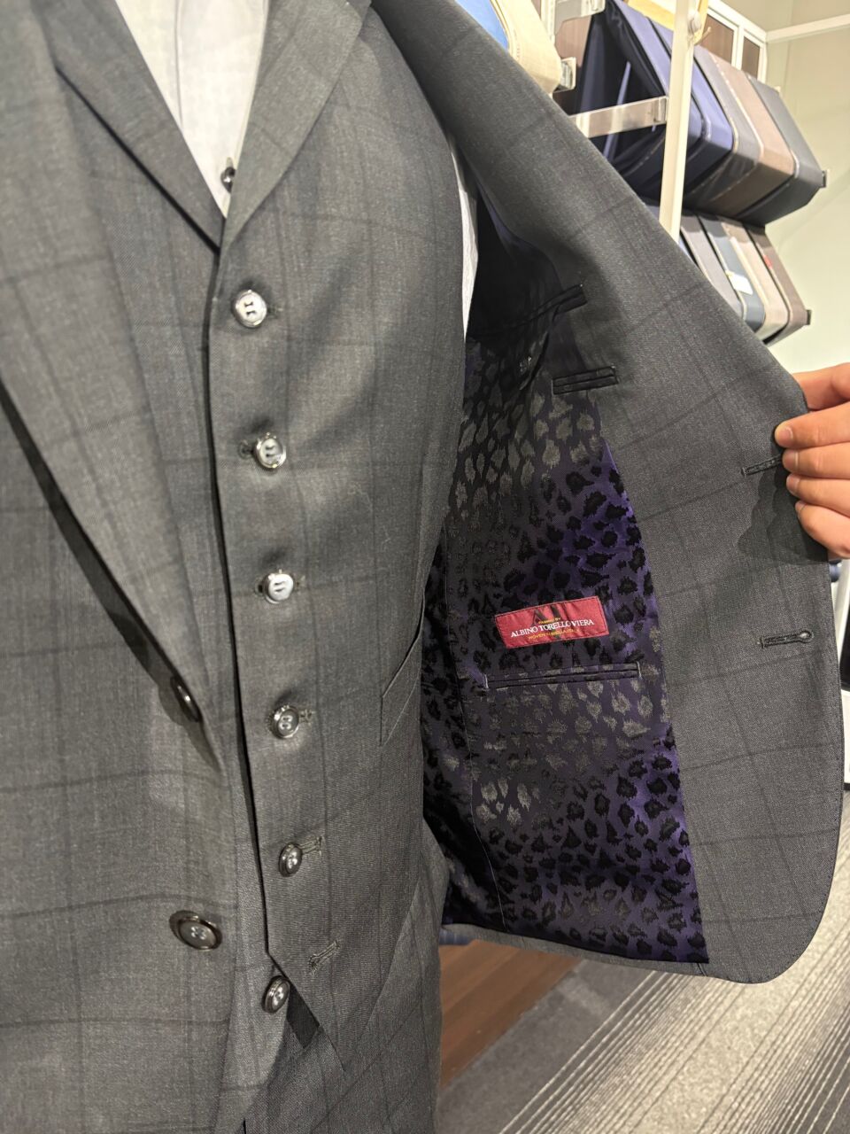 【TORELLO VIERA】グレー ウィンドウペンスーツ K.K様/10代/男性 オーダースーツSADA アクタ西宮店 投稿日 2026年3月26日 NEW! 最終更新日 2026年3月26日 2釦シングルスリーピーススーツ 生地素材 ウール100%【TORELLO VIERA】 グレー ウィンドウペン 秋冬生地 生地No.7-6588 裏地 キュプラ100% パープル ヒョウ柄 裏地No.SU-661 ボタン サンダー釦 グレー 釦No.SB-126 オプションその他 PP加工 シック加工 Dカン アームシック ベスト衿 胸ポケットチーフ仕立 アジャスター 担当スタイリスト 山田