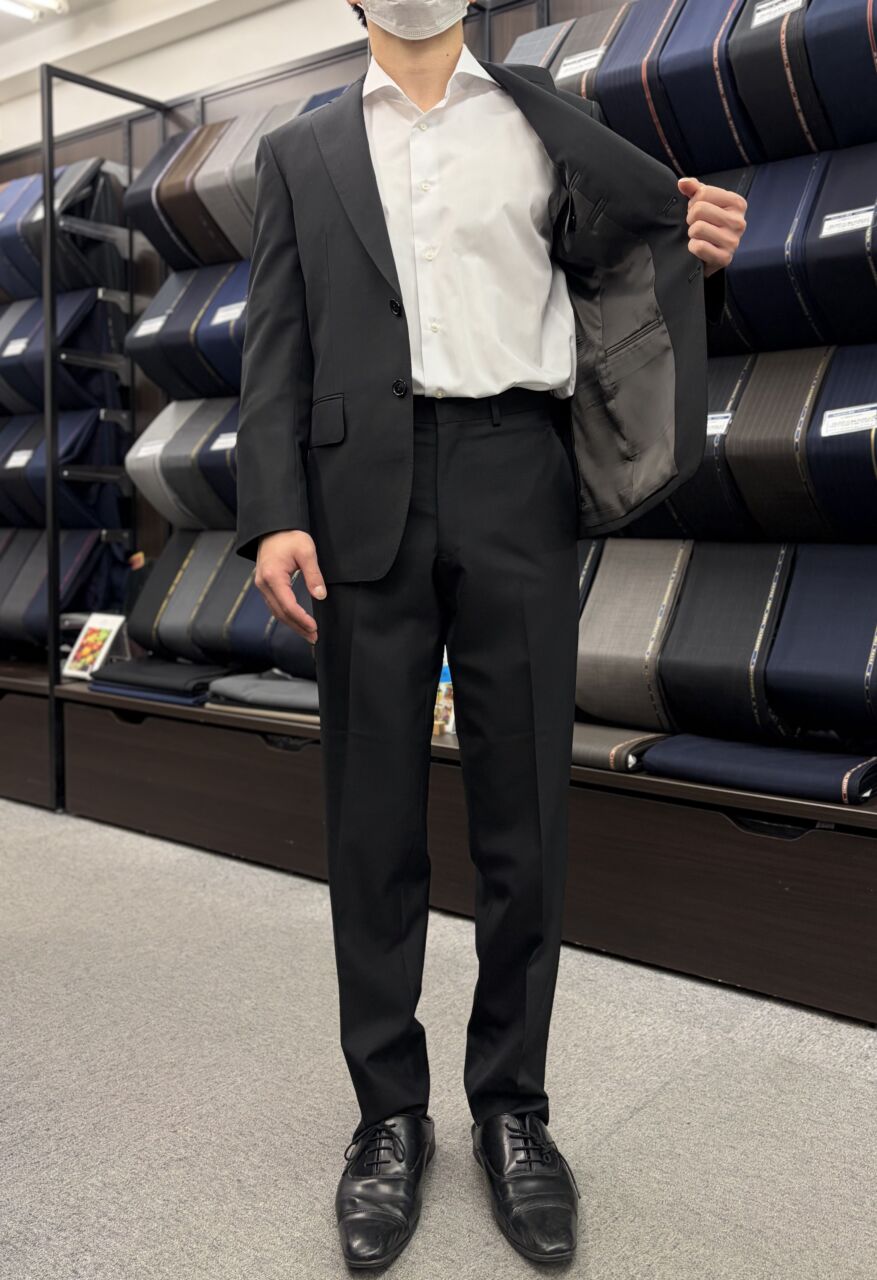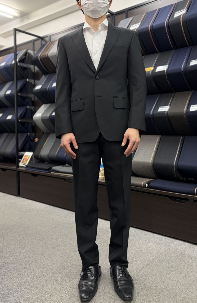 永遠の定番 ブラック無地スーツ オーダースーツSADA 赤羽店 投稿日 2026年3月19日 NEW! 最終更新日 2026年3月19日 2釦シングルスーツ 生地素材 初回お試し生地 7-2561 黒無地 裏地 無料裏地No120 ボタン 無料釦No10 オプションその他 AMFステッチ 担当スタイリスト