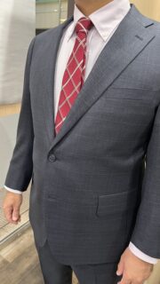 [HG仕立て]グレースーツに赤チェック柄でお洒落な仕上がりに