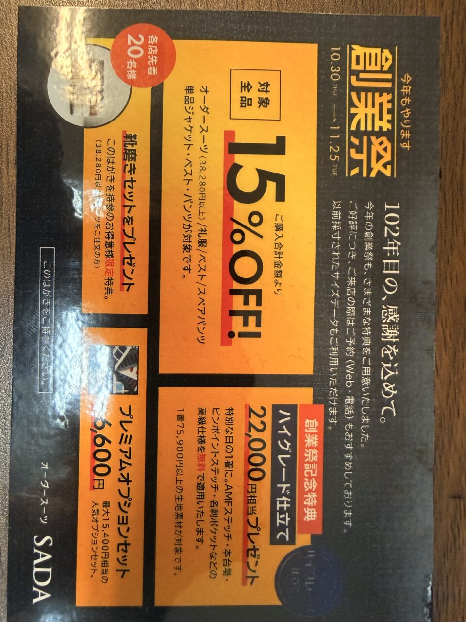 金額によっては割引率も高いのでこのセールでぜひお仕立てしましょう!!