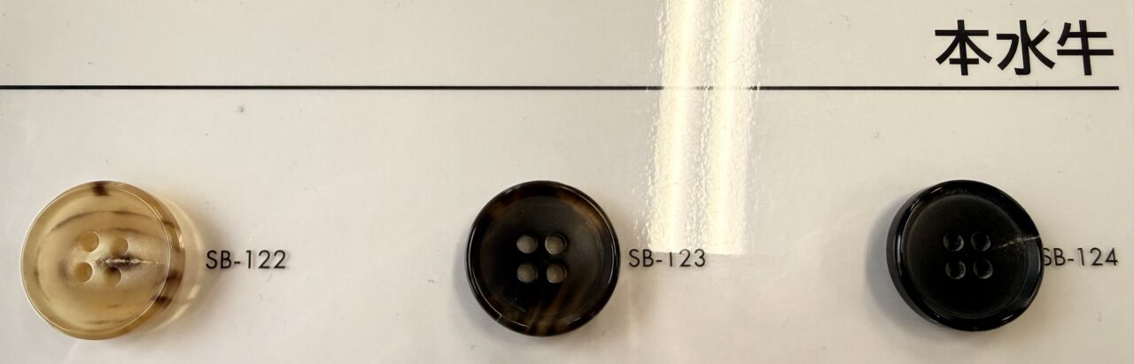 天然のボタンなので、ボタン1つ1つの柄が少し違うのも本水牛の醍醐味です。