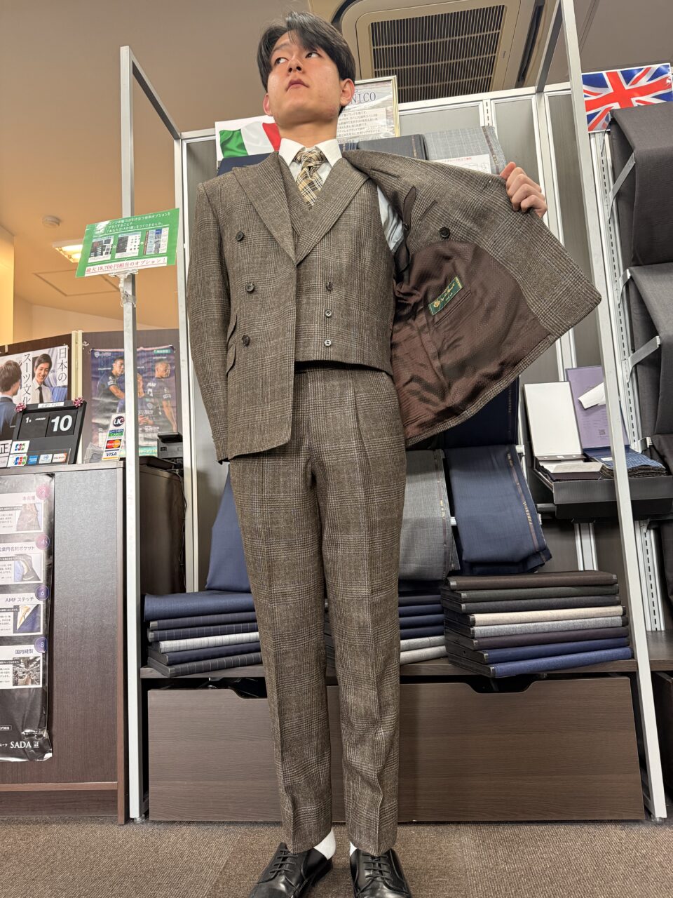 ゴワゴワした着心地もなく保温性ばっちりな季節感あるスーツとなっております!!