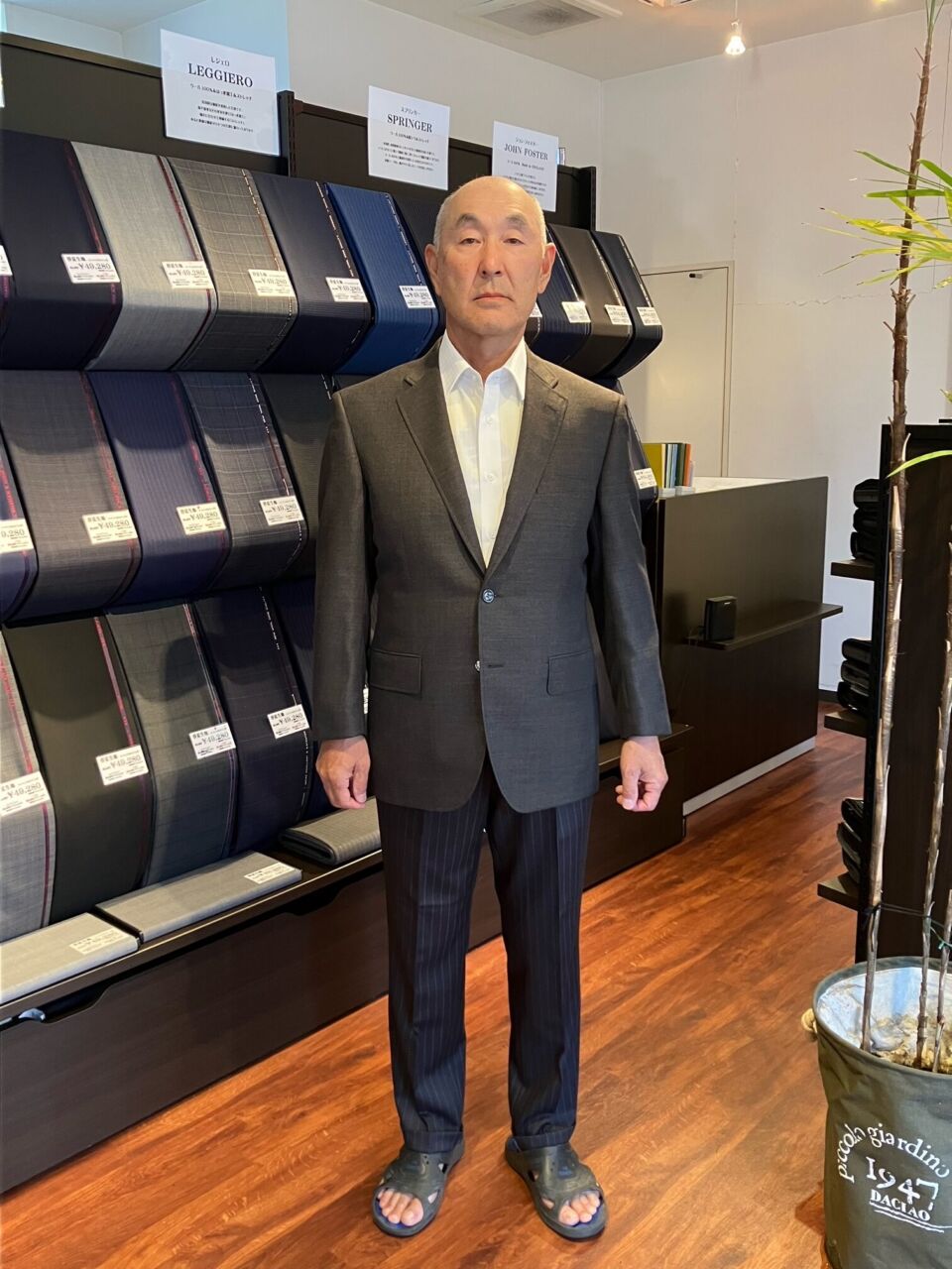 トレンドカラーのブラウンで大人の雰囲気と高級感のあるジャケット生地【カノニコ】 K.H様/60代/男性 オーダースーツSADA 福島郡山店 投稿日 2023年6月6日 最終更新日 2023年6月4日 この記事の内容は、2023年6月6日当時のものです。 公開から2年以上経過しています。(922日) 皆様こんにち、SADA郡山店です(^^) お客様の素敵なスーツをご紹介します。 ジャケット 生地素材 ウール100% ブラウン 春夏生地 7-3590 裏地 チェス柄 グリーン ボタン グレー オプションその他 重ねボタン ミシンステッチ 担当スタイリスト 髙久
