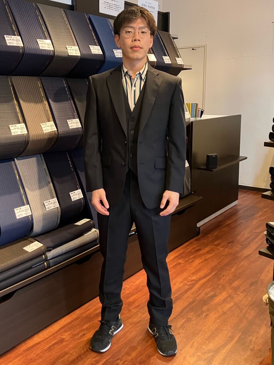 万能な無地ブラックでストレッチ素材を生かしたスタイリッシュな1着 T.K 様/20代/男性 オーダースーツSADA 福島郡山店 投稿日 2023年7月8日 最終更新日 2023年7月8日 この記事の内容は、2023年7月8日当時のものです。 公開から2年以上経過しています。(890日) 皆様こんにちは、SADA郡山店です! 本日はお客様の素敵なスーツをご紹介します。 スリーピース 生地素材 ウール100%+ストレッチ 無地ブラック 春夏生地 7-3541 裏地 SU733 ネイビー・馬車ストライプ ボタン ブラック オプションその他 PP加工 シック加工 担当スタイリスト 三輪