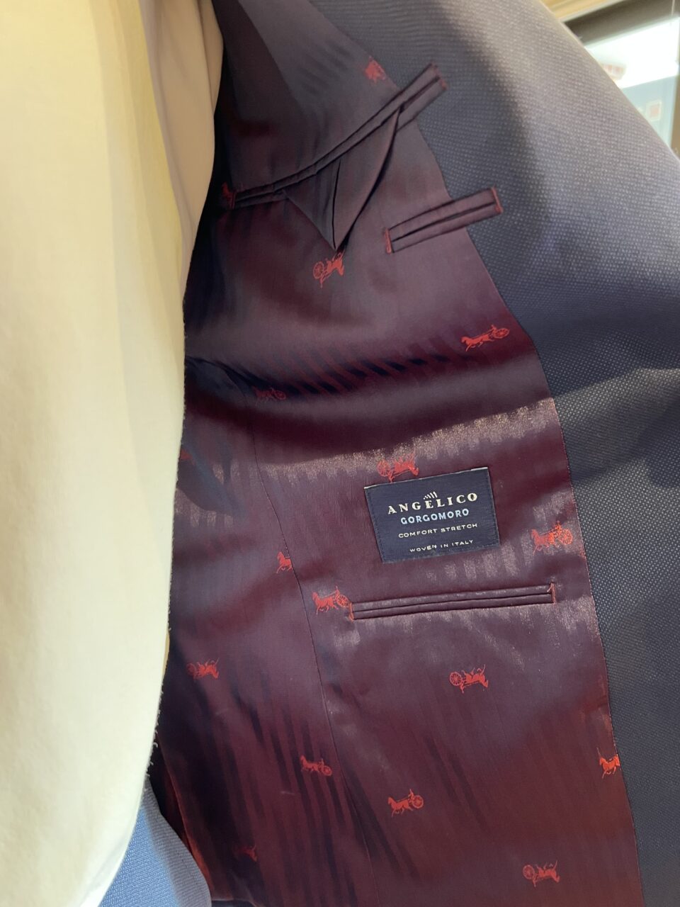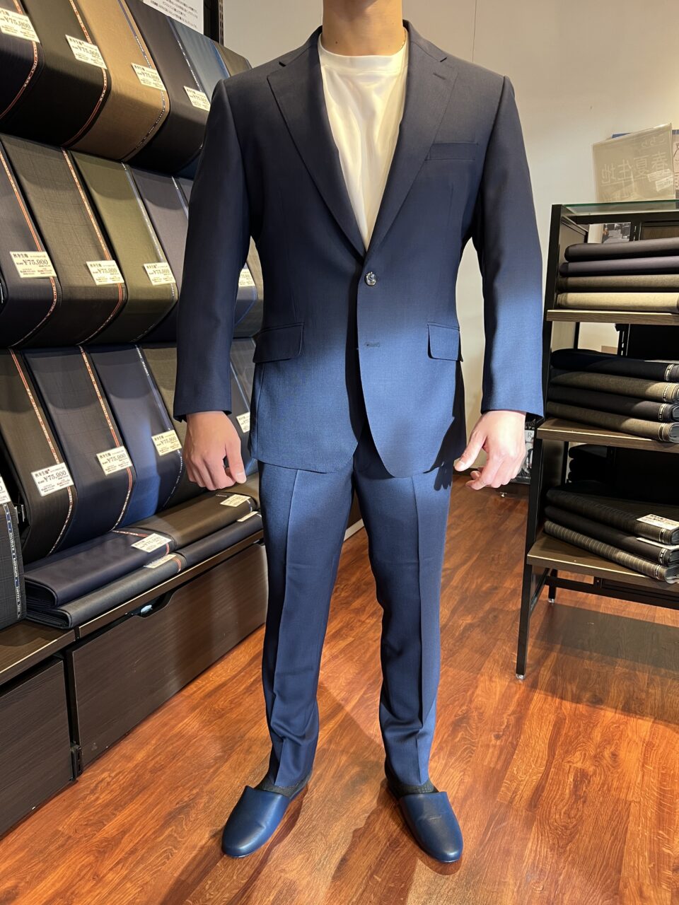 イタリア製の滑らかなネイビーがメリハリのある身体にしっかりフィットしたスタイリッシュな1着 T.K様 オーダースーツSADA 福島郡山店 投稿日 2025年11月2日 NEW! 最終更新日 2025年11月2日 2ボタン シングルスーツ 生地素材 ウール100% ネイビー バーズアイ柄 秋冬生地 7-6875(アンジェリコ) 裏地 ポリエステル60%・キュプラ40% ダークレッド 馬車柄 ボタン オーバル釦(K48) ネイビー・ブラウン オプションその他 PP加工 シック加工 AMFステッチ 担当スタイリスト 栁田