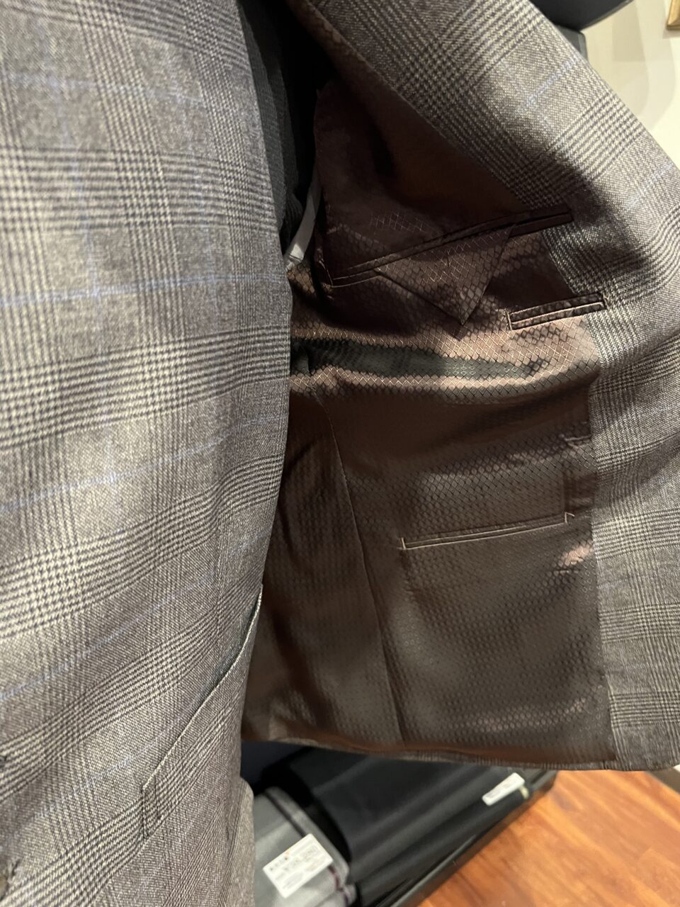 ブラウンチェック柄で大人っぽい上品な雰囲気が漂うおしゃれな1着 C.N様 オーダースーツSADA 福島郡山店 投稿日 2025年11月13日 NEW! 最終更新日 2025年11月13日 スリーピース 生地素材 ウール100% ブラウン チェック柄 秋冬生地 7-6551(フォルテ) 裏地 キュプラ100% ブラウン ダイヤ格子柄 ボタン MP-2釦 ベージュブラウン オプションその他 AMFステッチ シック加工 PP加工 担当スタイリスト 栁田