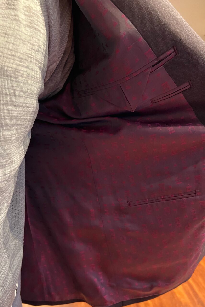 深みのあるワインブラウンとチェス柄裏地で他と差のつくオシャレな1着 T.O様 オーダースーツSADA 福島郡山店 投稿日 2025年11月21日 NEW! 最終更新日 2025年11月21日 2ボタン シングルスーツ 生地素材 ウール100% ワインブラウン 無地 秋冬生地 7-6576(レジェロ) 裏地 キュプラ100% ダークピンク チェス柄 ボタン 貝ボタン ピンクベージュ オプションその他 AMFステッチ PP加工 シック加工 担当スタイリスト 栁田