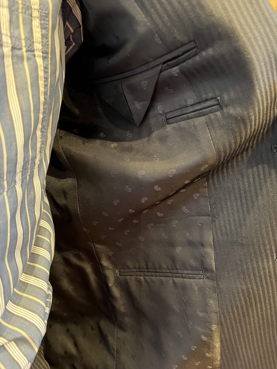 黒のシャドーストライプが上品に見えるスタイリッシュな1着 T.W様 オーダースーツSADA 福島郡山店 投稿日 2025年11月24日 NEW! 最終更新日 2025年11月24日 2ボタン シングルスーツ 生地素材 ウール50%・ポリエステル50% ブラック シャドーストライプ柄 秋冬生地 7-5506(フォルテ) 裏地 キュプラ100% ブラック ペイズリー柄 ボタン M釦 ブラック オプションその他 AMFステッチ 担当スタイリスト 片平