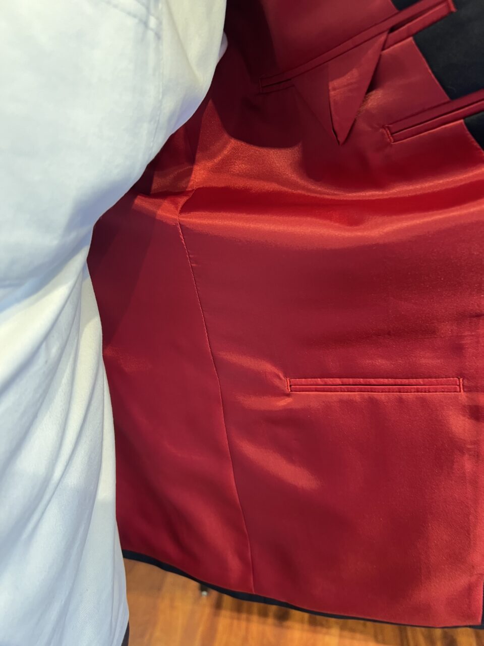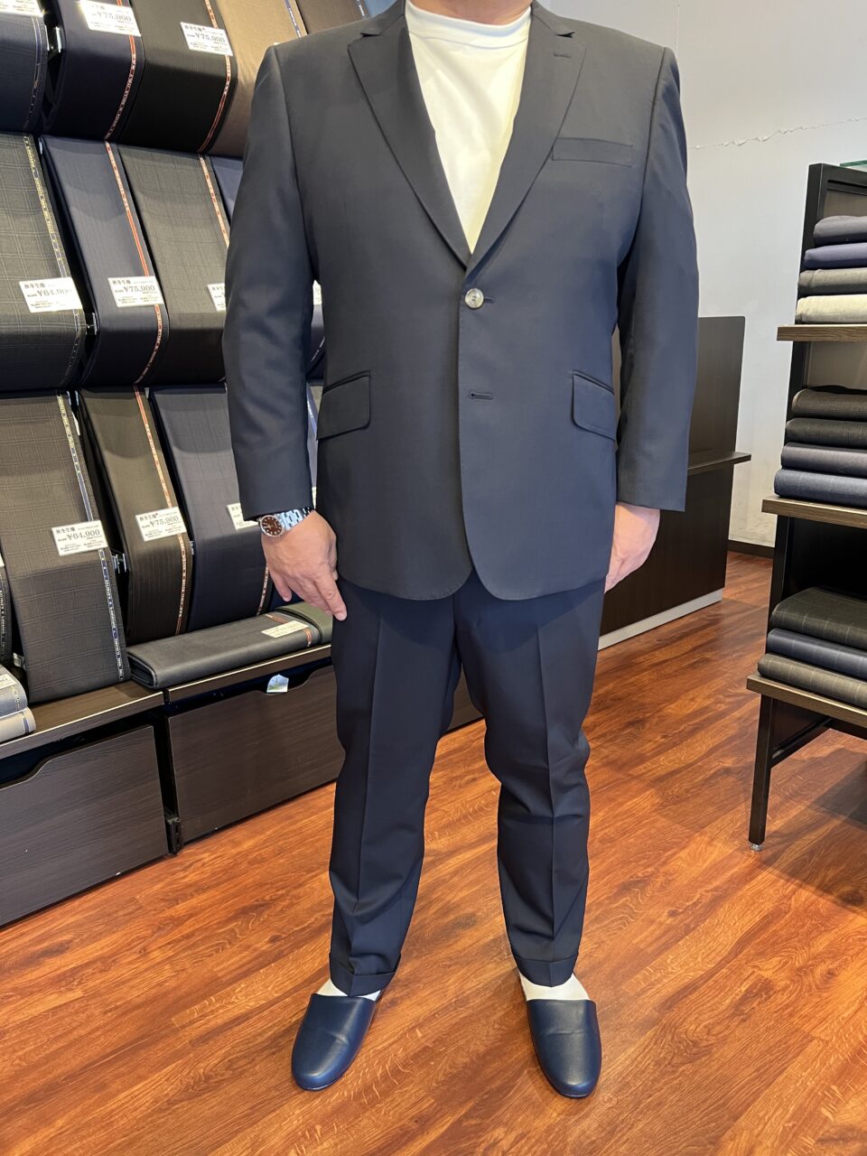 着回し力抜群のダークネイビーにレッドな裏地が個性を光らせる1着 K.T様 オーダースーツSADA 福島郡山店 投稿日 2025年11月24日 NEW! 最終更新日 2025年11月24日 2ボタン シングルスーツ 生地素材 ウール30%・ポリエステル70% ダークネイビー 無地 秋冬生地 7-6562 裏地 ポリエステル100% レッド 無地 ボタン M釦 ブラウン オプションその他 AMFステッチ 担当スタイリスト 片平