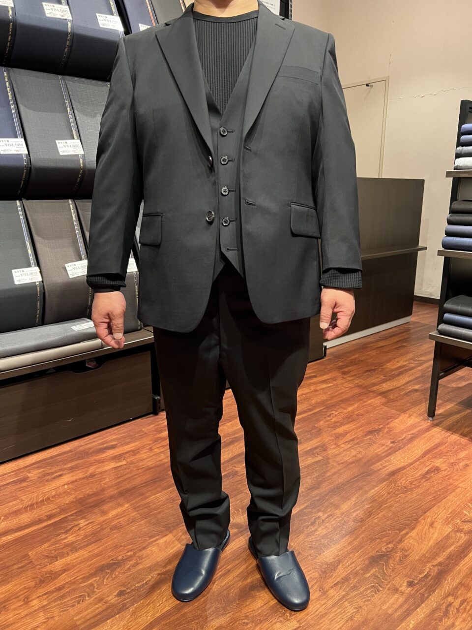 ブラックの無地で統一したフォーマルにも使えるスタイリッシュな1着 M.U様 オーダースーツSADA 福島郡山店 投稿日 2025年12月1日 NEW! 最終更新日 2025年12月1日 スリーピース 生地素材 ウール30%・ウール70% ブラック 無地 秋冬生地 7-6561 裏地 キュプラ100% グレー 無地(SU804) ボタン 本水牛釦(SB124) ブラック オプションその他 シック加工 PP加工 担当スタイリスト 片平