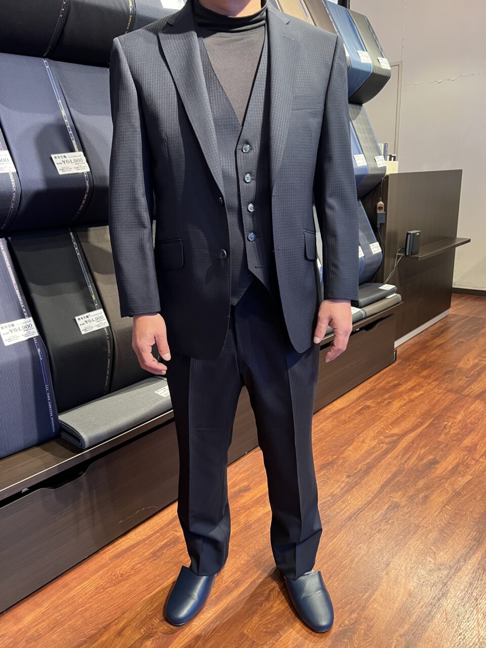 さりげない千鳥格子柄の光沢感がお洒落度を上げる1着 Y.S様 オーダースーツSADA 福島郡山店 投稿日 2025年12月18日 NEW! 最終更新日 2025年12月18日 スリーピース 生地素材 ウール100% ダークネイビー 千鳥格子柄 秋冬生地 7-6836(エレガンス) 裏地 ポリエステル100% グレー 無地 ボタン M釦 ネイビー オプションその他 AMFステッチ 担当スタイリスト 片平