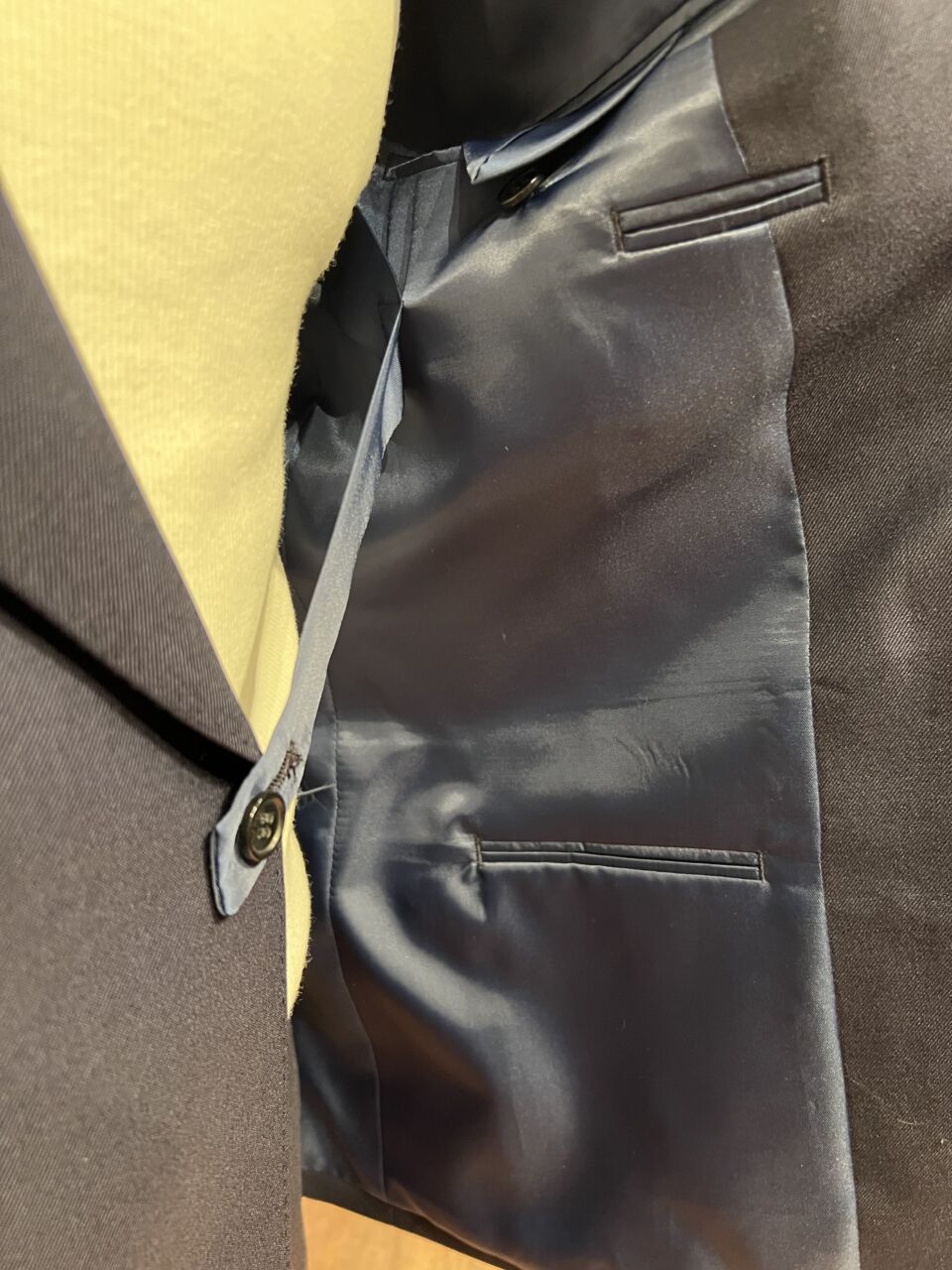 体型に合わせてすっきりと仕上げた重厚感のあるダブルスーツ仕立てな1着 J.T様 オーダースーツSADA 福島郡山店 投稿日 2026年2月23日 NEW! 最終更新日 2026年2月23日 6×2ボタン ダブルスーツ 生地素材 ウール100% ネイビー 無地 秋冬生地 7-6543(フォルテ) 裏地 ポリエステル100% ネイビー 無地 ボタン M釦 ダークネイビー オプションその他 ダブルスーツ仕立て チェンジポケット AMFステッチ PP加工 シック加工 担当スタイリスト 栁田