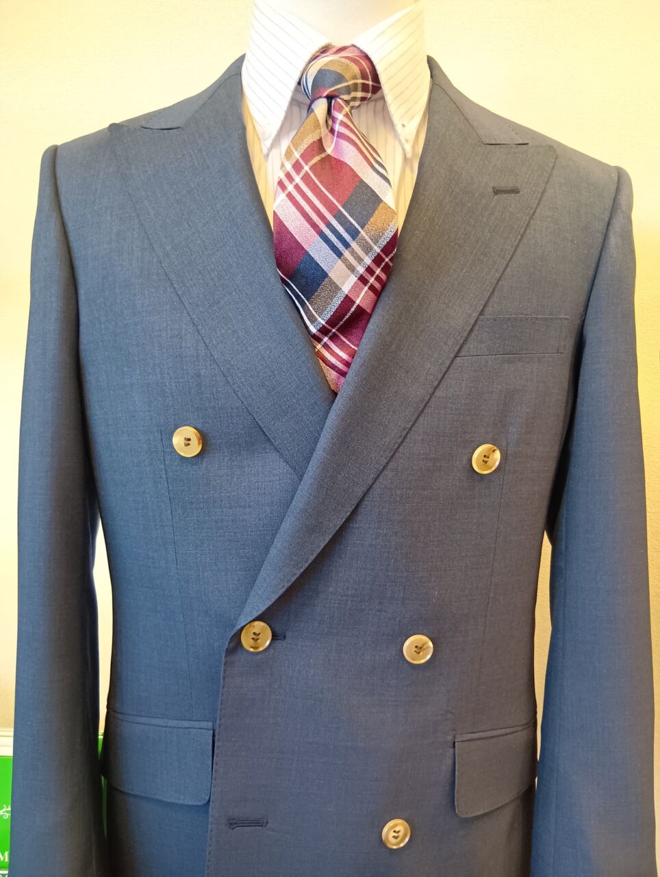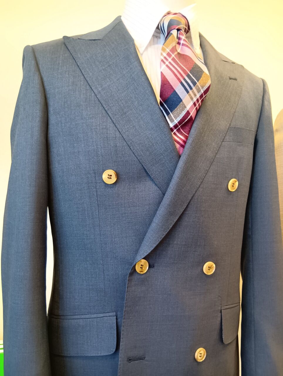 明るめカラーの無地スーツをダブルで仕立てました。