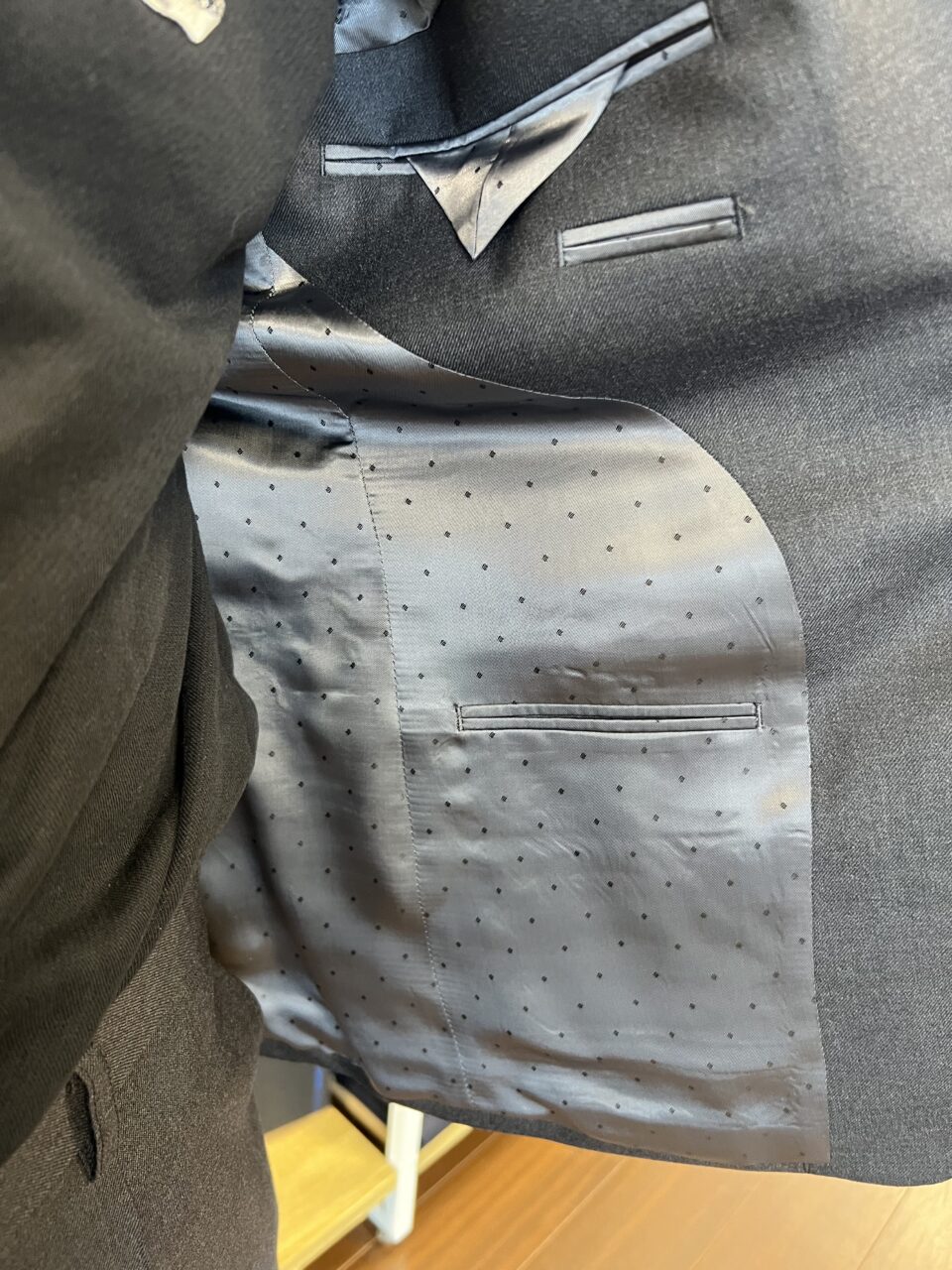 一見シンプルなグレーの内側にドット柄の遊び心を R.N様 オーダースーツSADA 福島駅前店 投稿日 2026年1月29日 NEW! 最終更新日 2026年1月29日 2ボタン シングルスーツ 生地素材 ウール100% グレー 無地 秋冬生地 7-6544(フォルテ) 裏地 キュプラ100% ライトグレー ドット柄(82) ボタン G釦(98) グレー オプションその他 AMFステッチ 本台場 PP加工 シック加工 担当スタイリスト 渡邊
