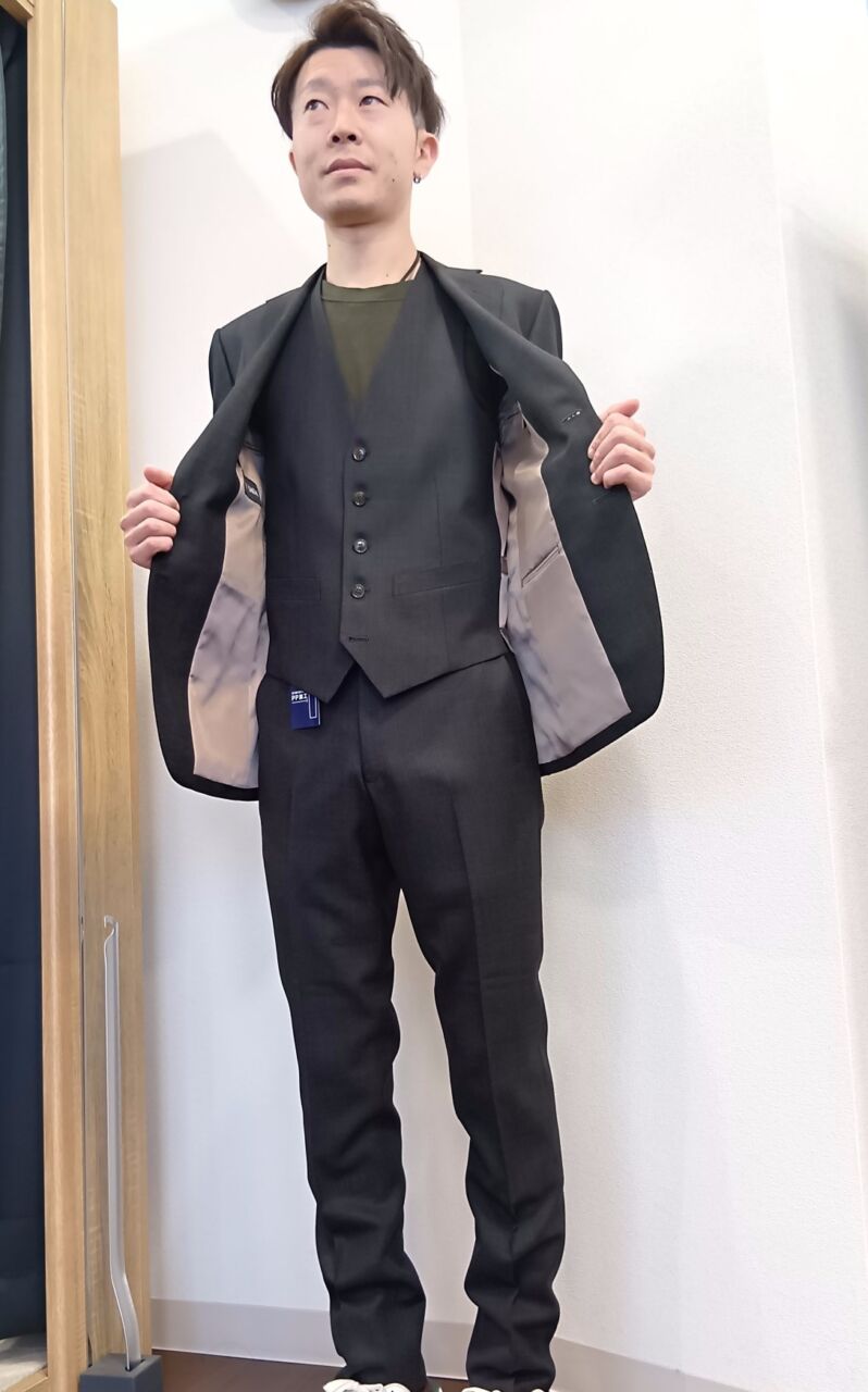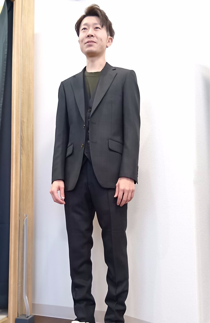 すっきりシルエットの三つ揃えスーツ K.T様/男性 オーダースーツSADA 福島駅前店 投稿日 2026年2月17日 NEW! 最終更新日 2026年2月17日 2ボタン シングルスーツ 生地素材 グレー色 バーズアイ柄 秋冬生地 7-6802 裏地 ベージュ色 無地 ボタン 茶系 オプションその他 ベスト PP加工 担当スタイリスト 渡邊