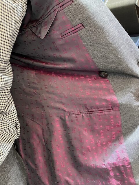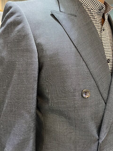 スッキリシルエットでダブルスーツのお仕立ていただきました~チェス柄の裏地がセクシーです✨~