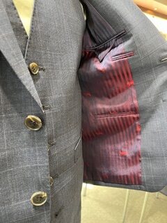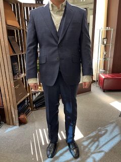 お仕立ていただいたのは紺色×チェック柄の3ピーススーツ。