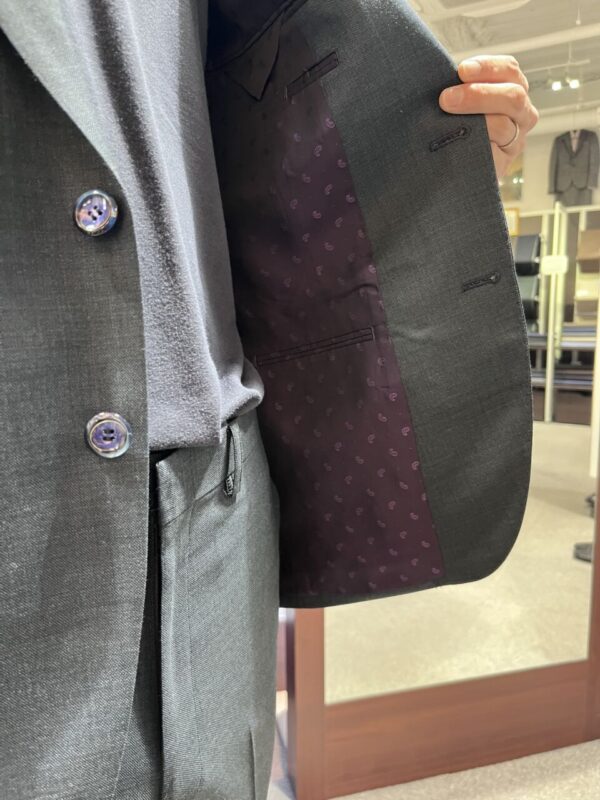 イタリア製のテーラー釦やペイズリー柄の裏地を選択いただき大変ドレッシーな1着です✨✨