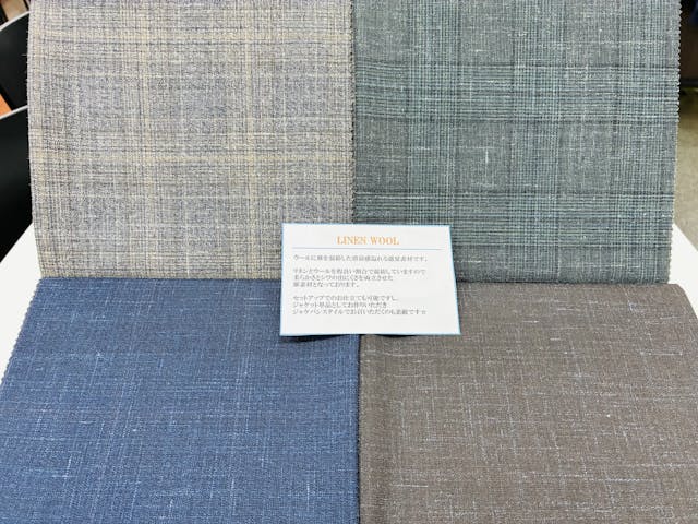 こちらの生地は以前ブログでもご紹介した、店頭マネキンも着用しています。