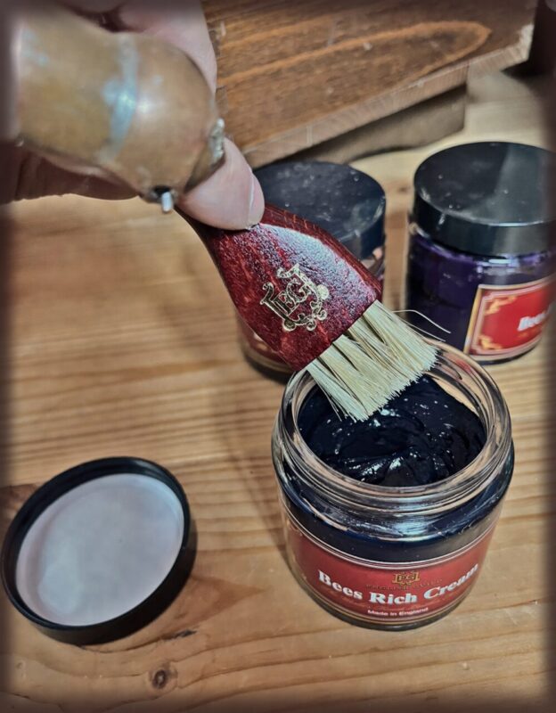 磨きこむことで、ドレスシューズなどに適した深みのあるツヤが出し、