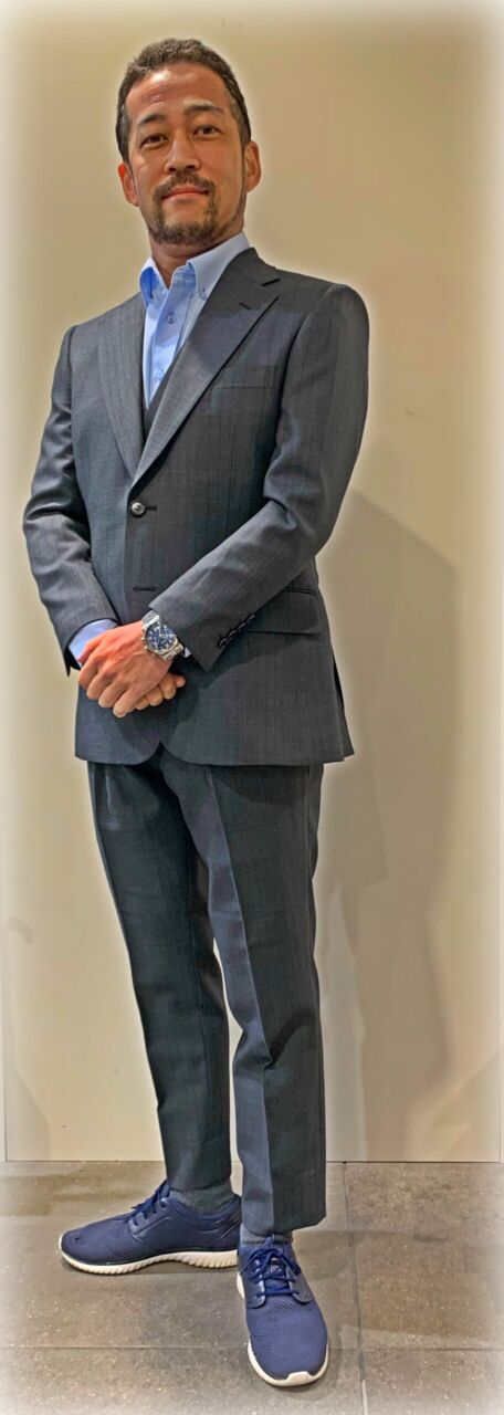 516 パープルストライプ生地にサイドヴェンツで美しいシルエット