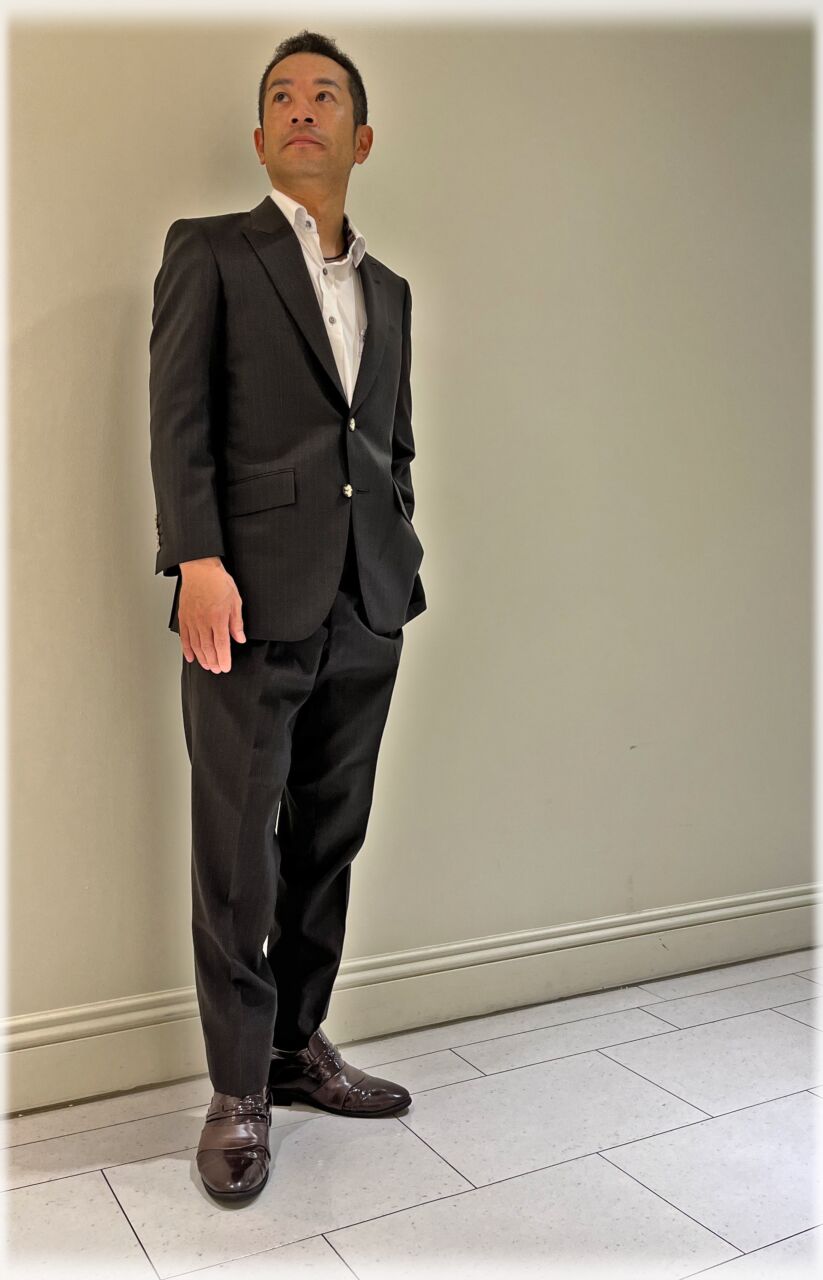2263 落ち着いたヴィンテージ感あるスーツ N.O様 40代 男性 オーダースーツSADA 金沢香林坊店 投稿日 2025年9月27日 最終更新日 2024年7月29日 購入日2024年7月11日 シングルブレステッド2ツ釦 生地素材 シーズン春夏 生地の色チャコールグレー 生地の柄ブラウンストライプ 生地番号7‐0553 裏地 ボルドー ボタン ブラウンマーブル オプションその他 スタイリッシュな8.0ハイゴージピークドラペル 当然サイドヴェンツ スクエアフラップスランテッドポケット 流行の2フォワードディーププリーツトラウザーズ 当然サイドシームポケット 担当スタイリスト 重田将秀