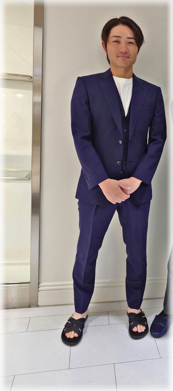 2274 王道のネイビースーツ S.Y様 20代 男性 オーダースーツSADA 金沢香林坊店 投稿日 2025年10月7日 NEW! 最終更新日 2024年8月17日 購入日2024年7月1日 シングルブレステッド2ツ釦 生地素材 シーズン春夏 生地の色ネイビー 生地の柄ピュア 生地番号7‐0543 裏地 チョコレートブラウン ボタン ネイビーマーブル オプションその他 クラシックな8.5レギュラーゴージノッチドラペル 当然サイドヴェンツ 流行の2フォワードディーププリーツトラウザーズ 当然サイドシームポケット 担当スタイリスト 大竹