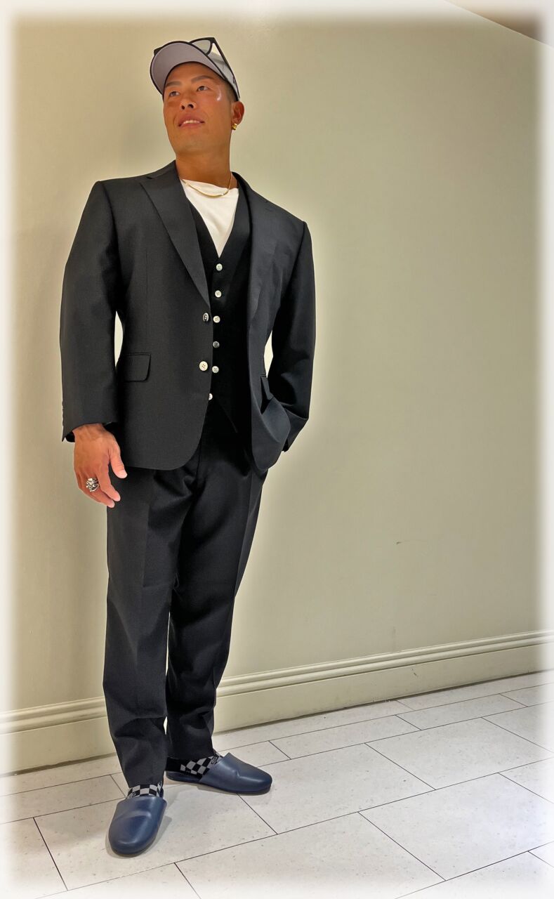 2279 モダンなブラックシャドウ H.M様 40代 男性 オーダースーツSADA 金沢香林坊店 投稿日 2025年10月12日 NEW! 最終更新日 2024年8月26日 購入日2024年7月21日 シングルブレステッド2ツ釦3ツ揃え 生地素材 シーズン春夏 生地の色ブラック 生地の柄シャドウストライプ 生地番号7-0504 裏地 シャンパンゴールドメッシュ ボタン ブラックパール オプションその他 クラシックな9.0レギュラーゴージノッチドラペル 当然サイドヴェンツ 流行の2フォワードディーププリーツトラウザーズ 当然サイドシームポケット ピスポケットレス 担当スタイリスト 重田将秀