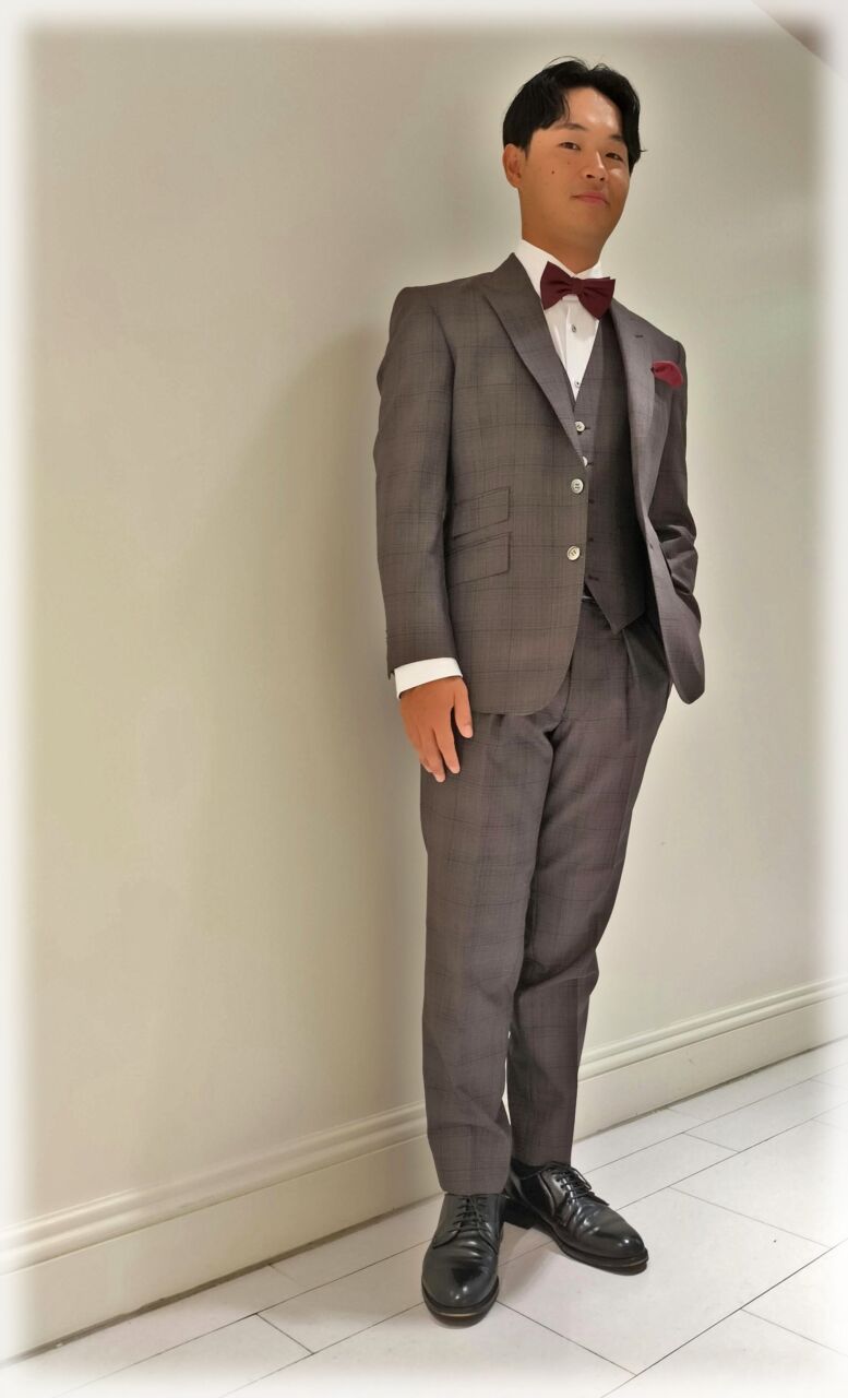 2306 クラシックなモカブラウンチェック Y.S様 20代 男性 オーダースーツSADA 金沢香林坊店 投稿日 2025年11月8日 NEW! 最終更新日 2024年9月21日 購入日2024年6月30日 シングルブレステッド2ツ釦3ツ揃え 生地素材 シーズン春夏 生地の色モカブラウン 生地の柄チェック 生地番号7-0821 裏地 チョコレートブラウンペイズリーベンベルグ ボタン ブラックパール オプションその他 スタイリッシュな8.0ハイゴージピークドラペル 当然サイドヴェンツ チケットポケット付きスクエアフラップポケット サージョンズカフス キッスボタンカフス 流行の2フォワードディーププリーツトラウザーズ 当然サイドシームポケット ピスポケットレス 担当スタイリスト 相沢