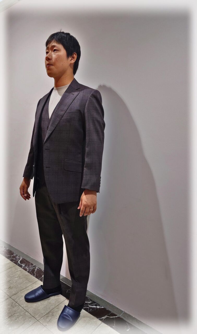 2320 渋いクラシックなブラウンチェック T.O様 30代 男性 オーダースーツSADA 金沢香林坊店 投稿日 2025年11月21日 NEW! 最終更新日 2024年9月30日 購入日2024年8月18日 シングルブレステッド2ツ釦3ツ揃え 生地素材 シーズン春夏 生地の色ブラウン 生地の柄チェック 生地番号7‐0821 裏地 パープルペイズリーベンベルグ ボタン ダークブラウンホーン オプションその他 クラシックな8.5レギュラーゴージノッチドラペル 当然サイドヴェンツ スタイリッシュなスランテッドポケット オーダー感あるピックステッチ 流行の2フォワードディーププリーツトラウザーズ 当然サイドシームポケット 担当スタイリスト 大竹