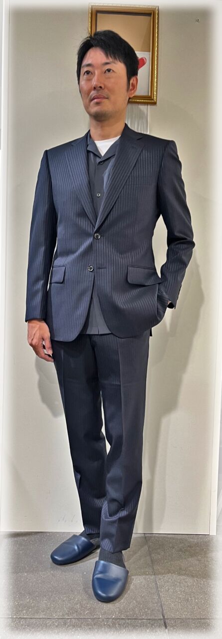 2335 王道のネイビーシャドウストライプ E.U様 男性 オーダースーツSADA 金沢香林坊店 投稿日 2025年12月6日 NEW! 最終更新日 2024年10月7日 購入日2024年8月26日 シングルブレステッド2ツ釦 生地素材 シーズン秋冬 生地の色ネイビー 生地の柄シャドウストライプ 生地番号7‐5547 裏地 チョコレートブラウンペイズリーベンベルグ ボタン チョコレートブラウンマット オプションその他 クラシックな8.5レギュラーゴージノッチドラペル 当然サイドヴェンツ ピスポケットレストラウザーズ 担当スタイリスト 重田将秀
