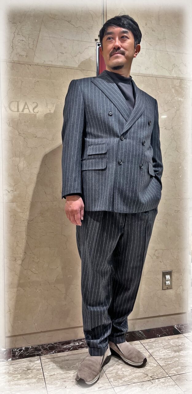 2364 イタリア・カノニコのウーステッドフランネル エレガントなチャコールグレーチョークストライプ S.M様 50代 男性 オーダースーツSADA 金沢香林坊店 投稿日 2026年1月2日 最終更新日 2024年11月5日 購入日202年月日 ダブルブレステッド6ツ釦 生地素材 シーズン秋冬 生地の色チャコールグレー 生地の柄チョークストライプ 生地番号CA-S017 裏地 ボルドー ボタン チョコレートブラウンマット オプションその他 美しすぎる9.5ハイゴージピークドラペル 当然サイドヴェンツ ブリティッシュなチケットポケット 流行の2フォワードディーププリーツトラウザーズ 当然サイドシームポケット ウエストバンド5.0 6ツ釦ノッチドラペルダブルブレステッドウエストコート 担当スタイリスト 重田
