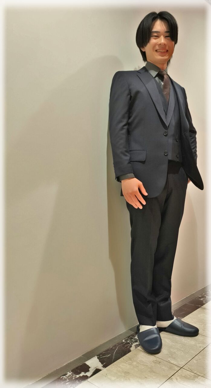 2376 王道のダークネイビー R.M様 20代 男性 オーダースーツSADA 金沢香林坊店 投稿日 2026年1月12日 NEW! 最終更新日 2024年11月19日 購入日2024年10月20日 シングルブレステッド2ツ釦3ツ揃え 生地素材 シーズン秋冬 生地の色ダークネイビー 生地の柄ピュア 生地番号7‐5562 裏地 ミッドナイトブルー ボタン ミッドナイトブルー オプションその他 スタイリッシュな7.5ハイゴージノッチドラペル ピスポケットレストラウザーズ ピークドラペル4ツ釦ダブルブレステッドウエストコート 担当スタイリスト 相沢