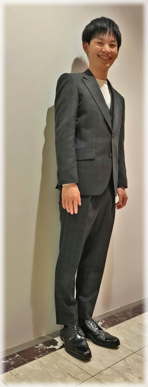 2392 モダンなセミピークドラペル S.W様 20代 男性 オーダースーツSADA 金沢香林坊店 投稿日 2026年1月27日 NEW! 最終更新日 2024年12月2日 購入日2024年11月5日 シングルブレステッド2ツ釦 生地素材 シーズン春夏 生地の色チャコールグレー 生地の柄チェック 生地番号7‐0515 裏地 ブラックアーガイル ボタン グレーマット オプションその他 美しすぎる9.5ハイゴージセミピークドラペル 当然サイドヴェンツ スタイリッシュなスランテッドポケット キッスボタンカフス 流行の2フォワードディーププリーツトラウザーズ 当然サイドシームポケット ピスポケットレス 担当スタイリスト 相沢