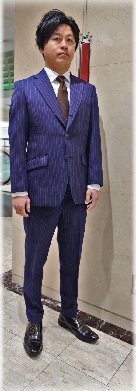 2398 爽やかなブルーホワイトストライプ Y.K様 30代 男性 オーダースーツSADA 金沢香林坊店 投稿日 2026年2月2日 NEW! 最終更新日 2024年12月7日 購入日2024年11月3日 シングルブレステッド3ツ釦段返り 生地素材 シーズン秋冬 生地の色ブルー 生地の柄ホワイトストライプ 生地番号7‐7552 裏地 ライトグレー ボタン マロンブラウンマット オプションその他 クラシックな8.5レギュラーゴージノッチドラペル 当然サイドヴェンツ スタイリッシュなスランテッドポケット ターンナップ5.0トラウザース 担当スタイリスト 大竹