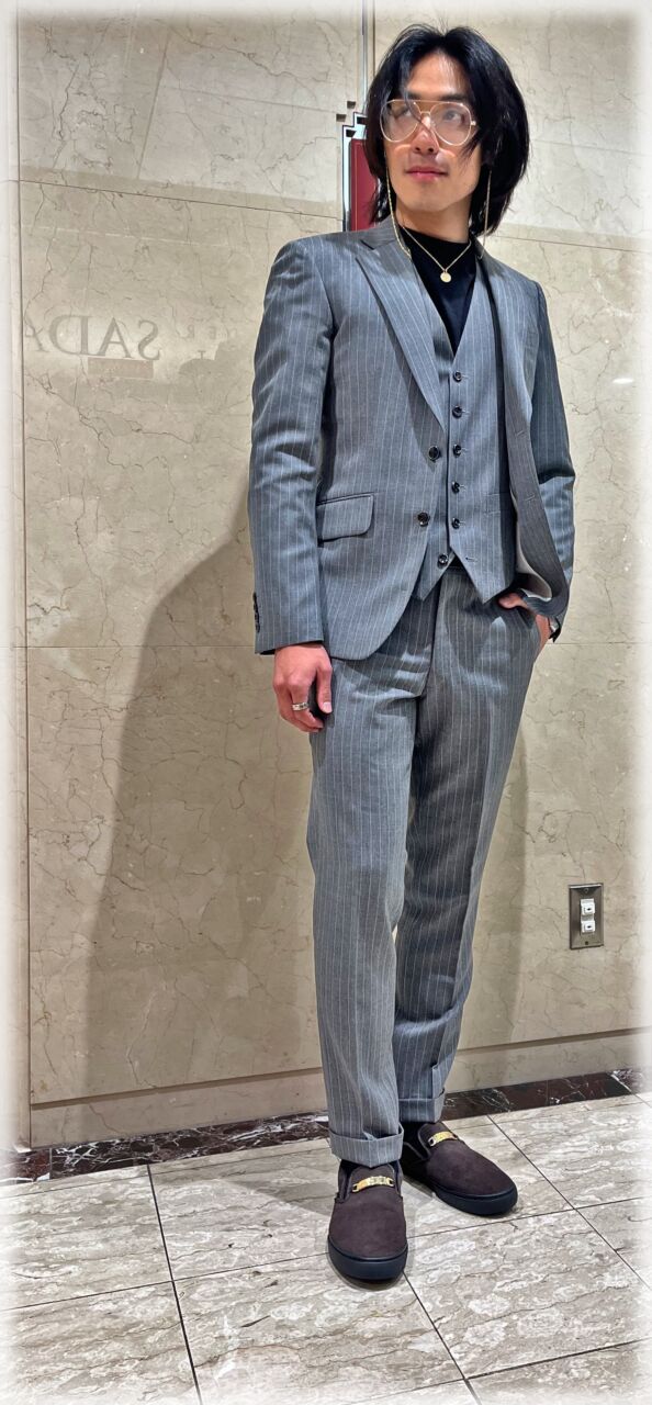 2425 爽やかなライトグレーストライプ Y.T様 20代 男性 オーダースーツSADA 金沢香林坊店 投稿日 2026年2月28日 NEW! 最終更新日 2024年12月22日 購入日2024年11月22日 シングルブレステッド2ツ釦3ツ揃え 生地素材 シーズン秋冬 生地の色グレー 生地の柄ストライプ 生地番号6-1112 77536 裏地 ホワイトペイズリーベンベルグ ボタン ブラックサンダー オプションその他 スタイリッシュな8.5ハイゴージノッチドラペル 当然サイドヴェンツ スランテッドポケット 担当スタイリスト 重田 将秀